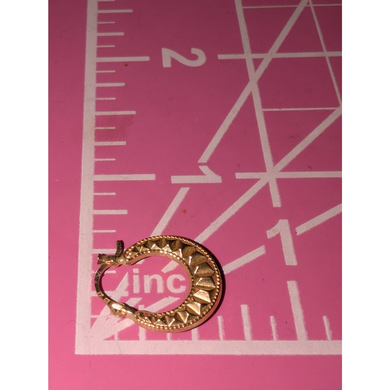 10K Gold Textured Sunburst Design 5/8" Hoop Earrings 0.57g. Pre-owned, these hoop earrings are in excellent condition.