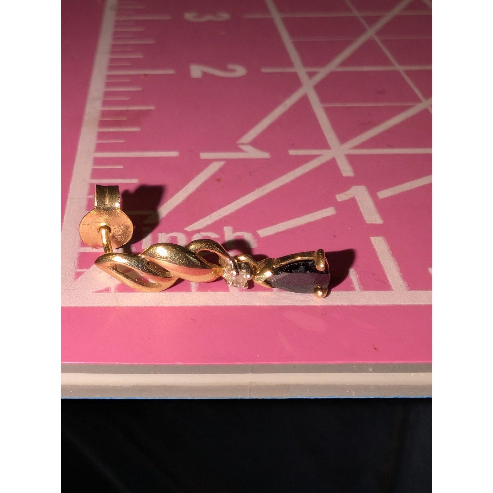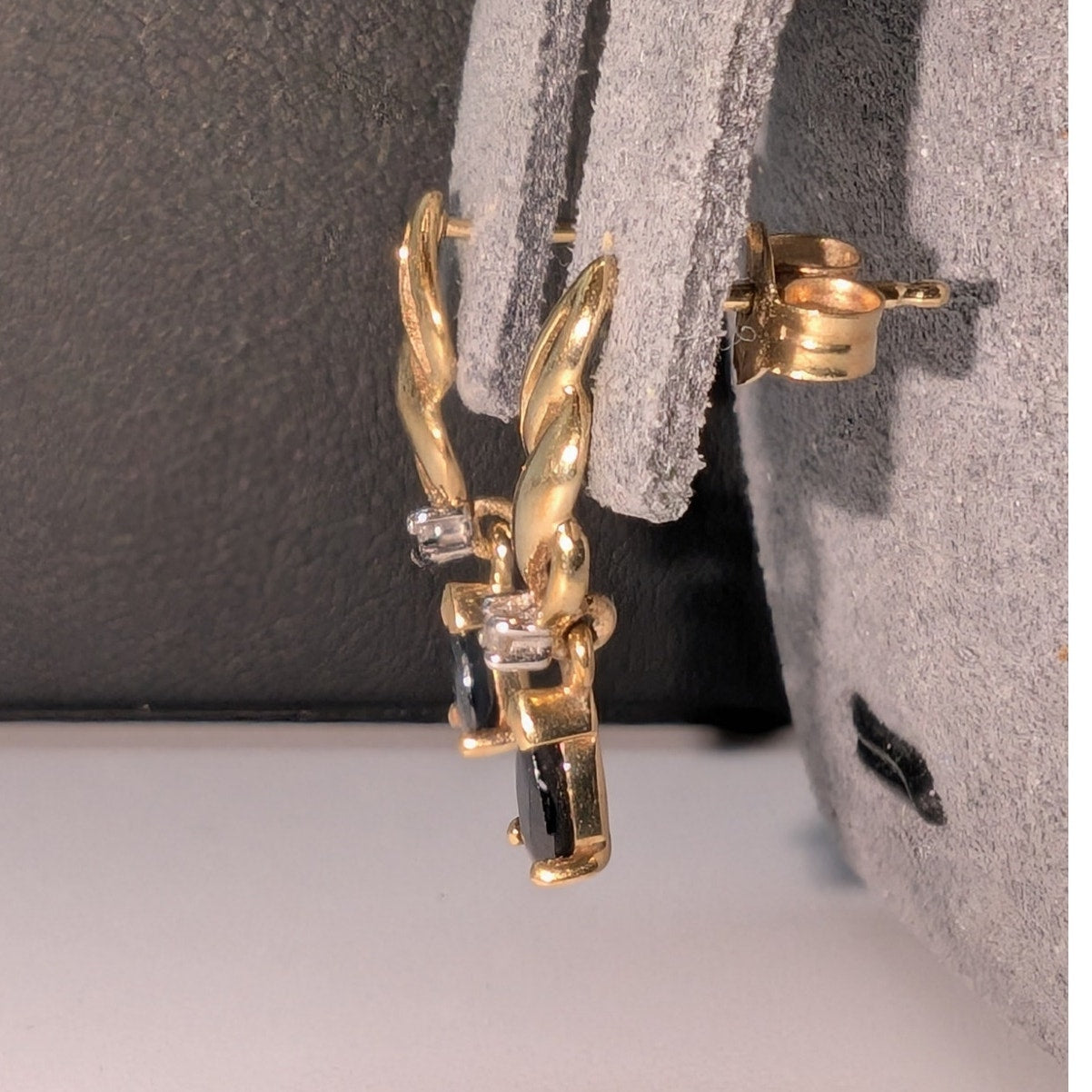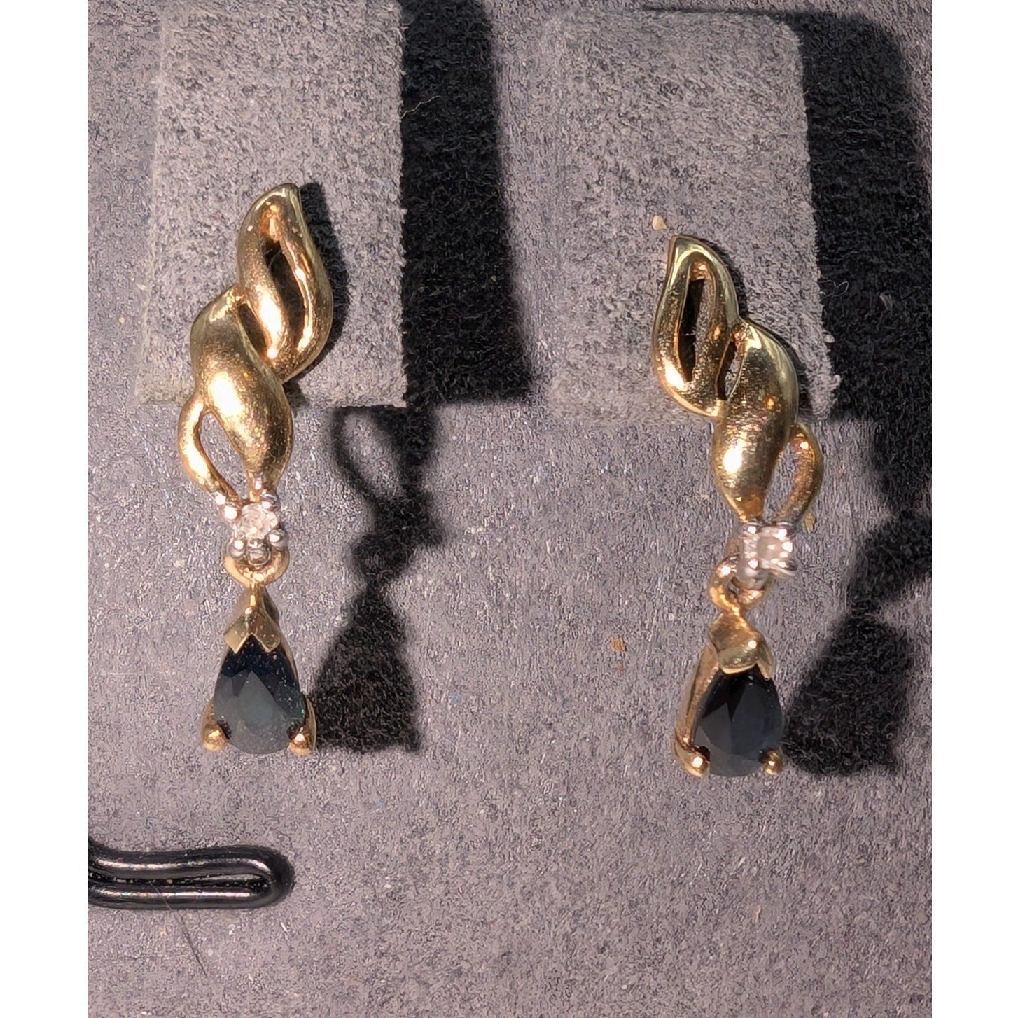14K Flame Teardrop Sapphire Diamond Drop Pierced Earrings. Pre-owned, these earrings are in excellent condition.