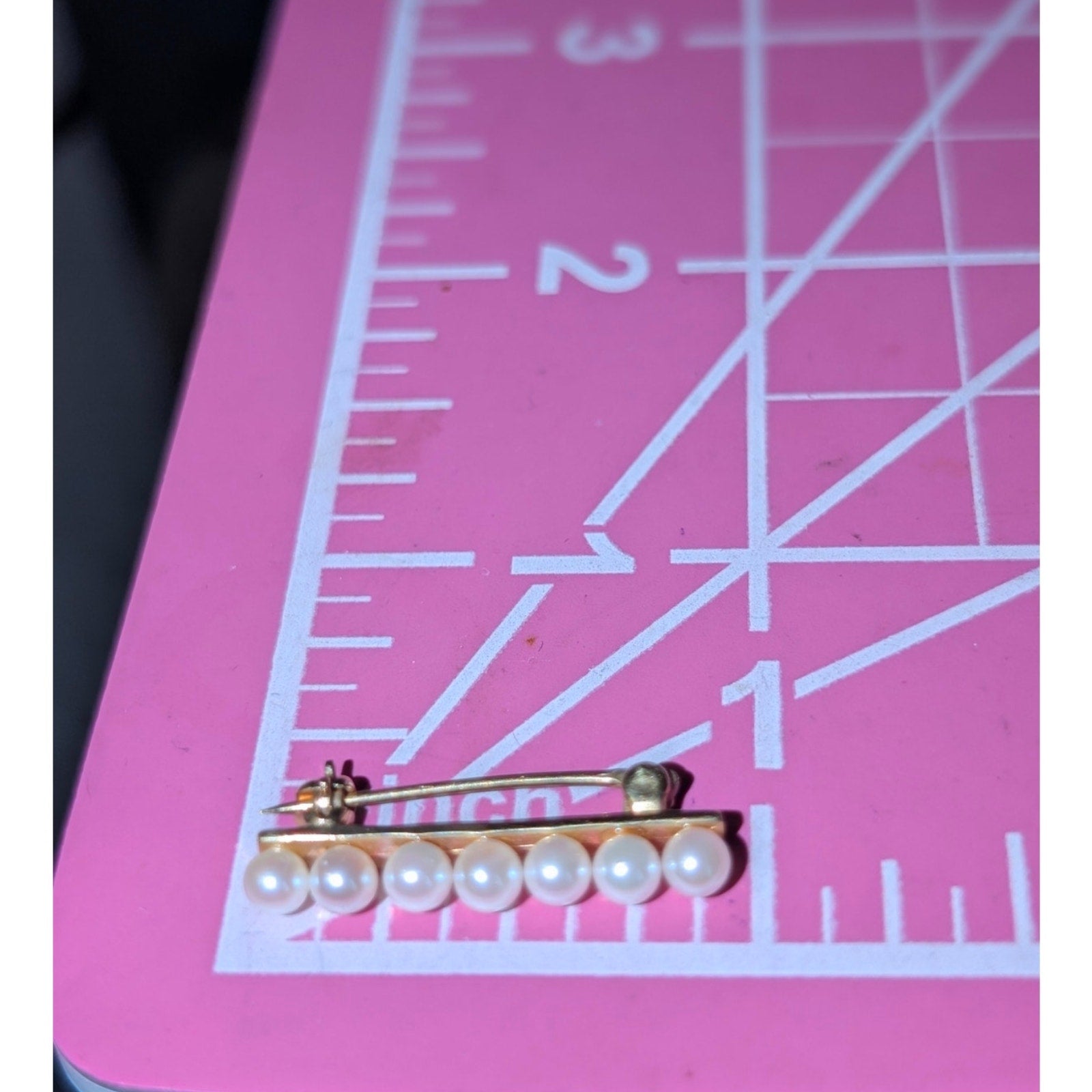 14k Gold Seven Genuine 3.43mm Pearl Bar Brooch 1.67g