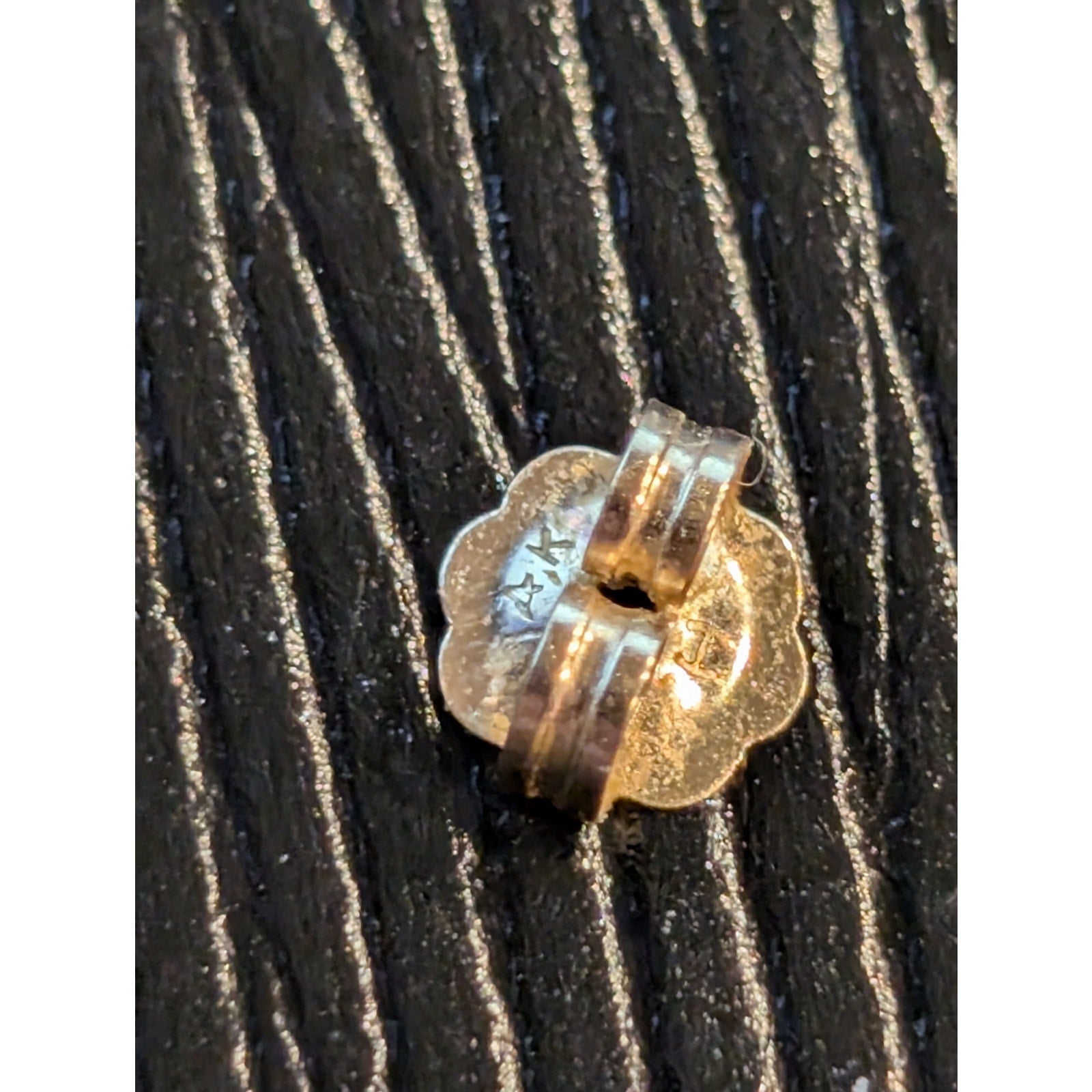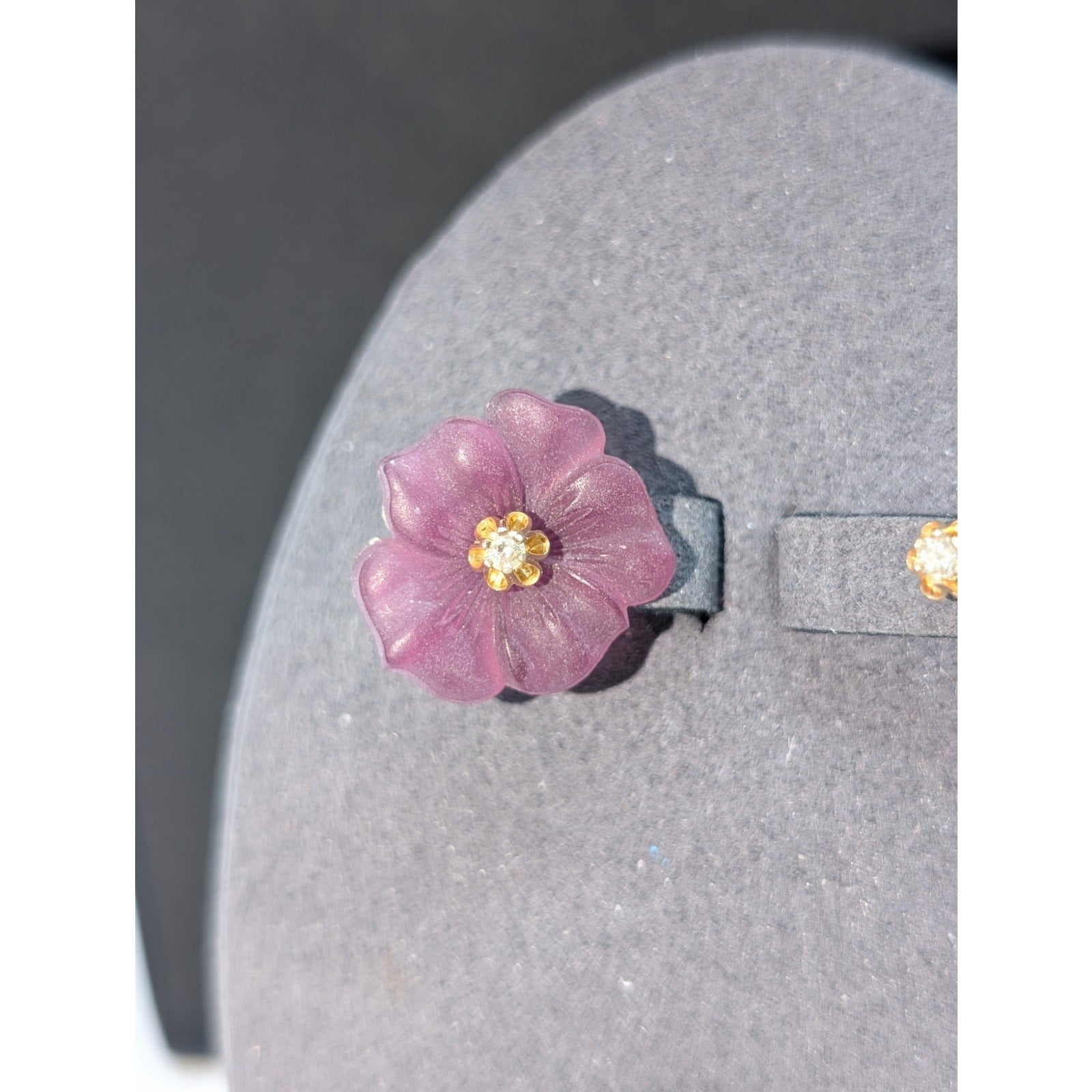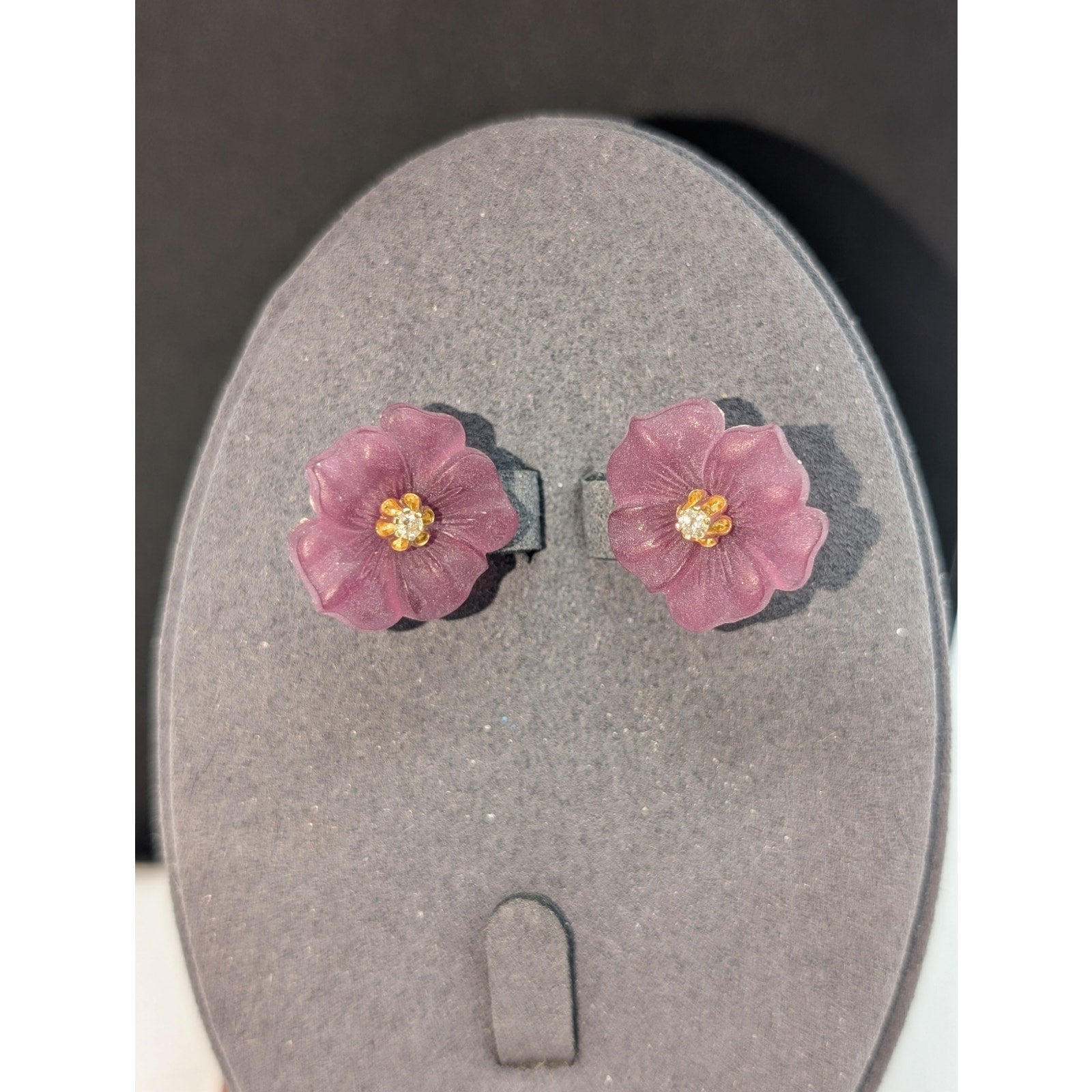 14k Vtg Tested Diamond Stud Earrings W/ Removable Purple Carved Flower Jacket