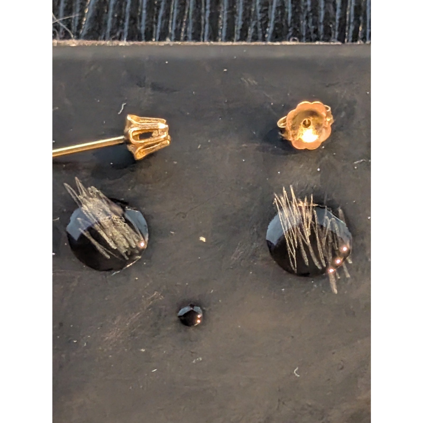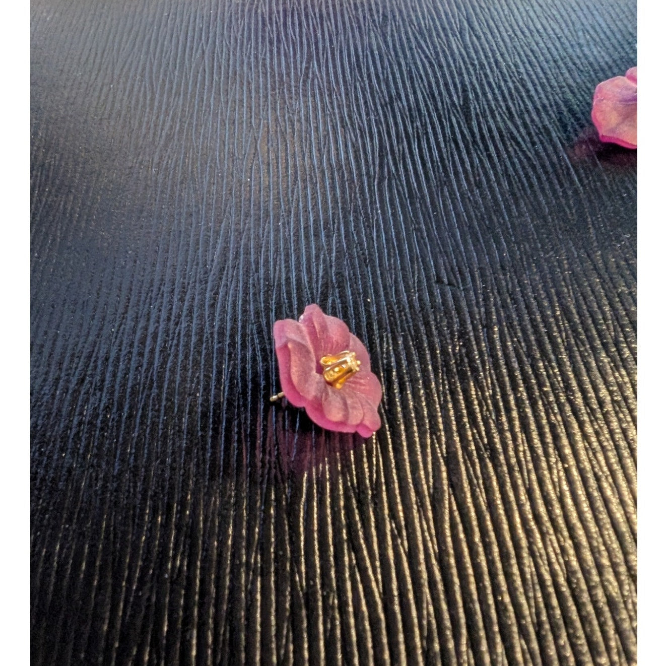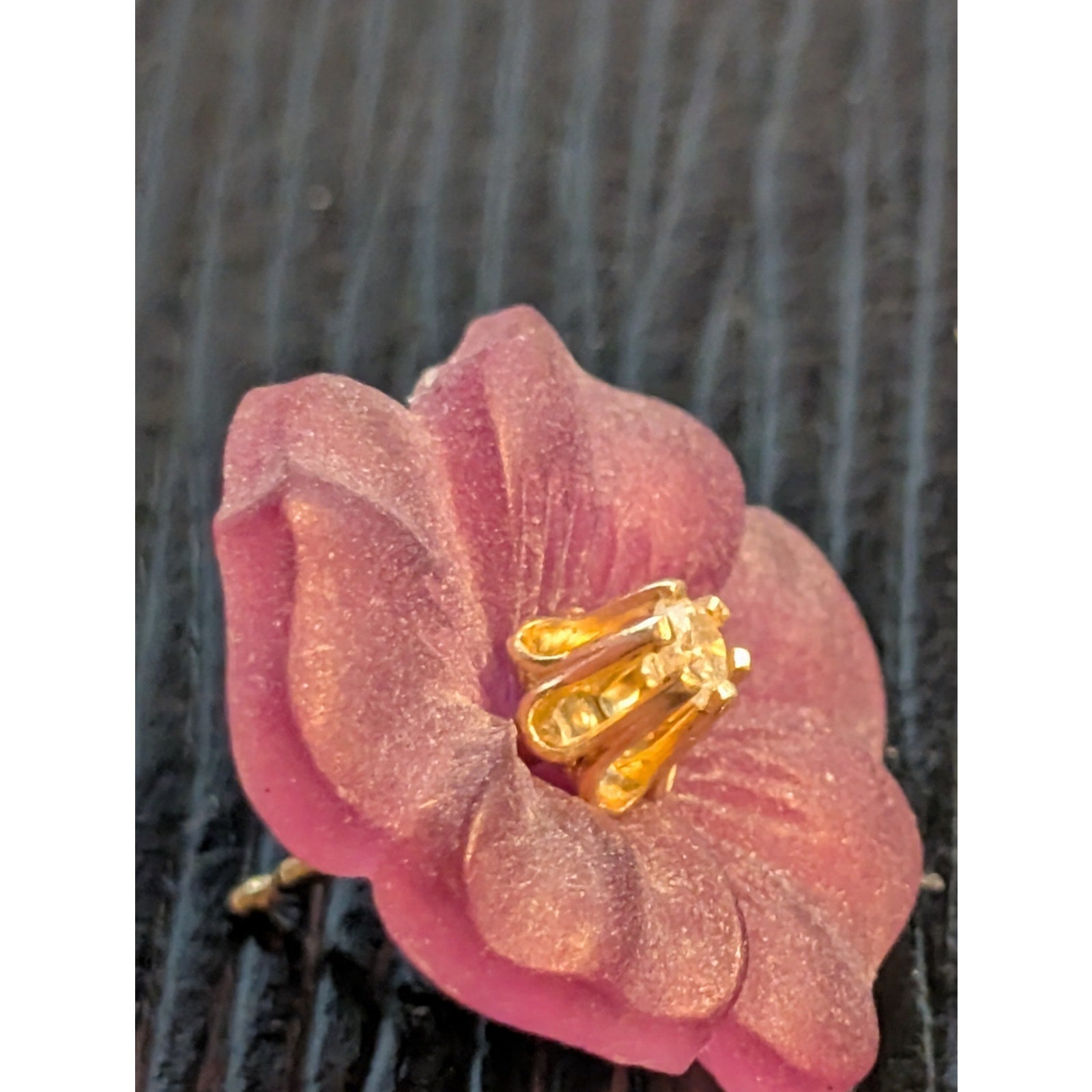 14k Vtg Tested Diamond Stud Earrings W/ Removable Purple Carved Flower Jacket