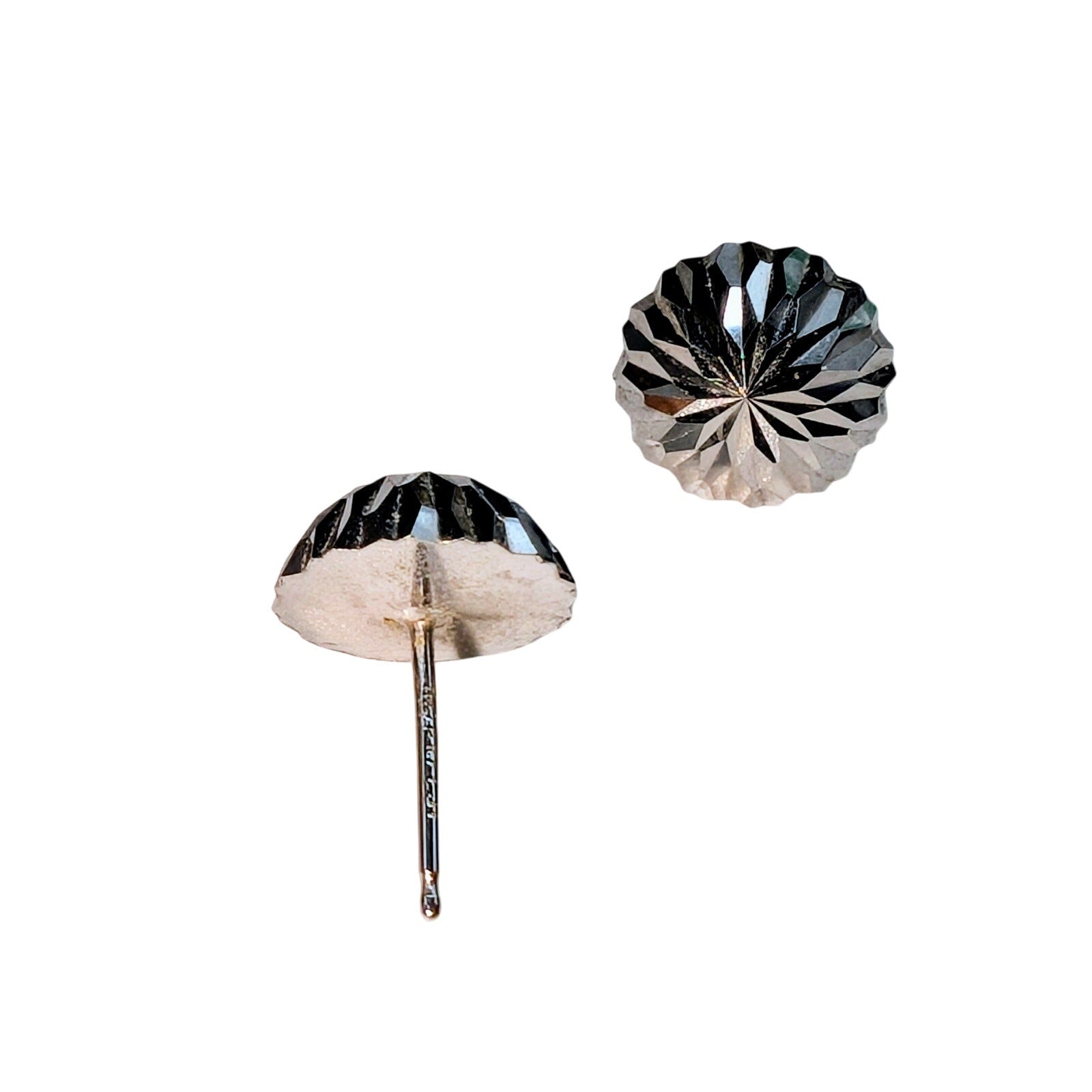 14k White Gold Diamond Cut Half Ball Stud Earrings Approx. 10mm. Pre-owned, these earrings are in excellent condition.