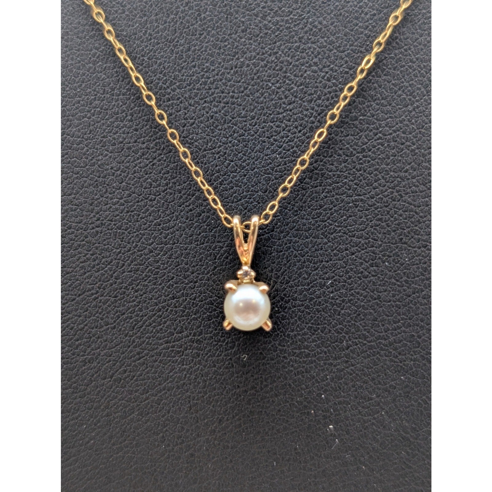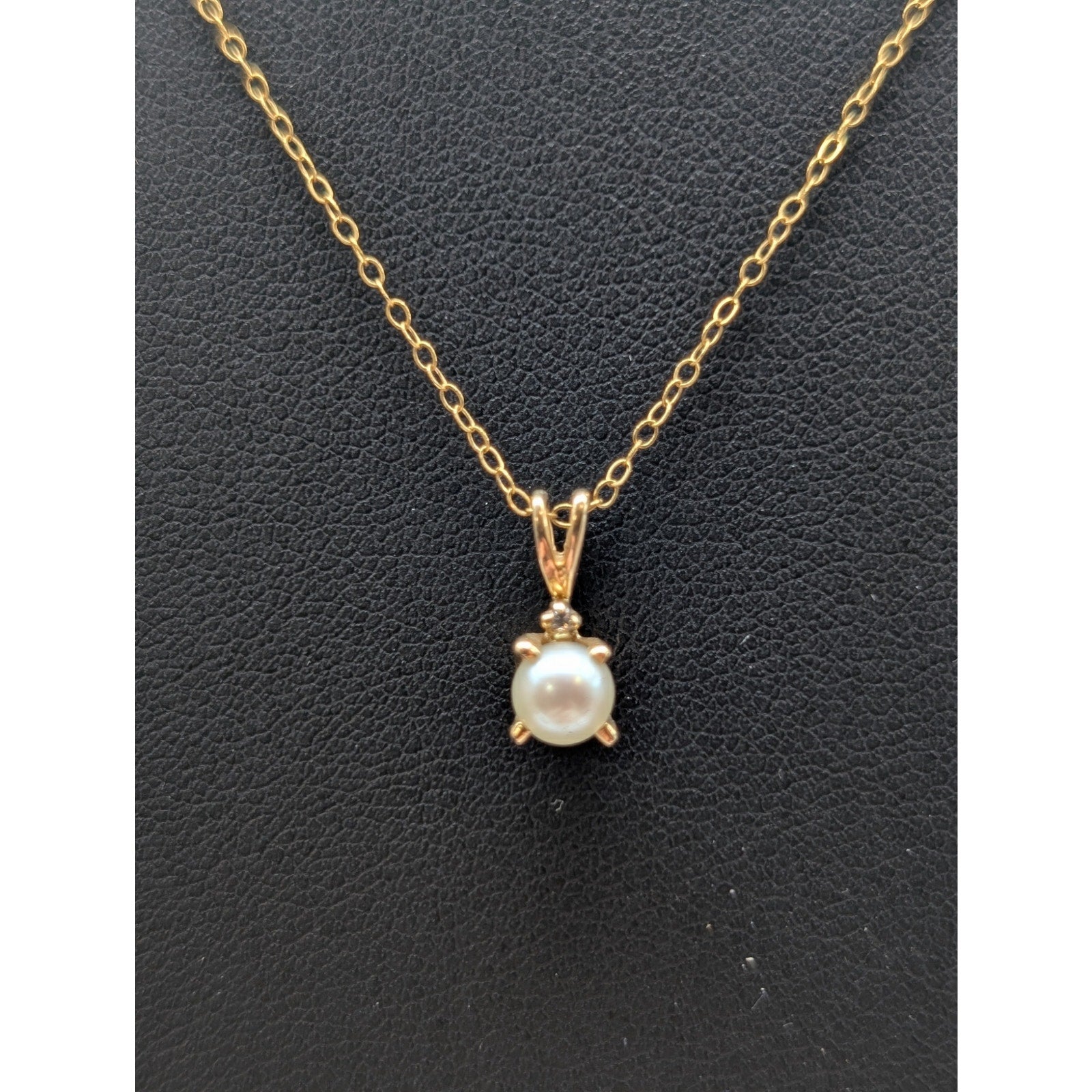 14K Yellow Gold Approx. 5mm Genuine Pearl & Diamond Pendant Chain 18" Necklace. Pre-owned, this necklace is in excellent condition.