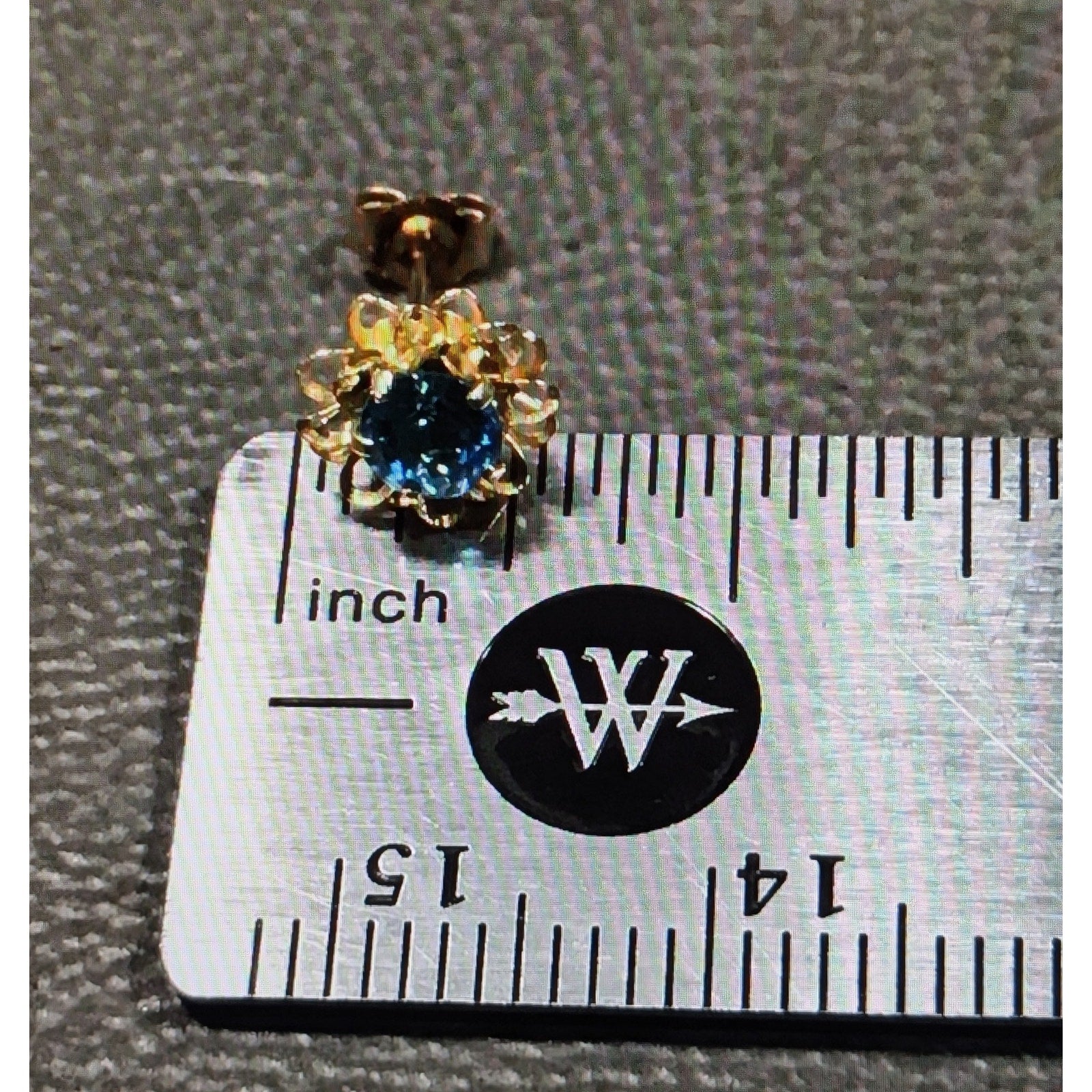 14k Yellow Gold Blue Spinel Delicate Floral Stud Earrings, Pre-owned, these earrings are in excellent condition.