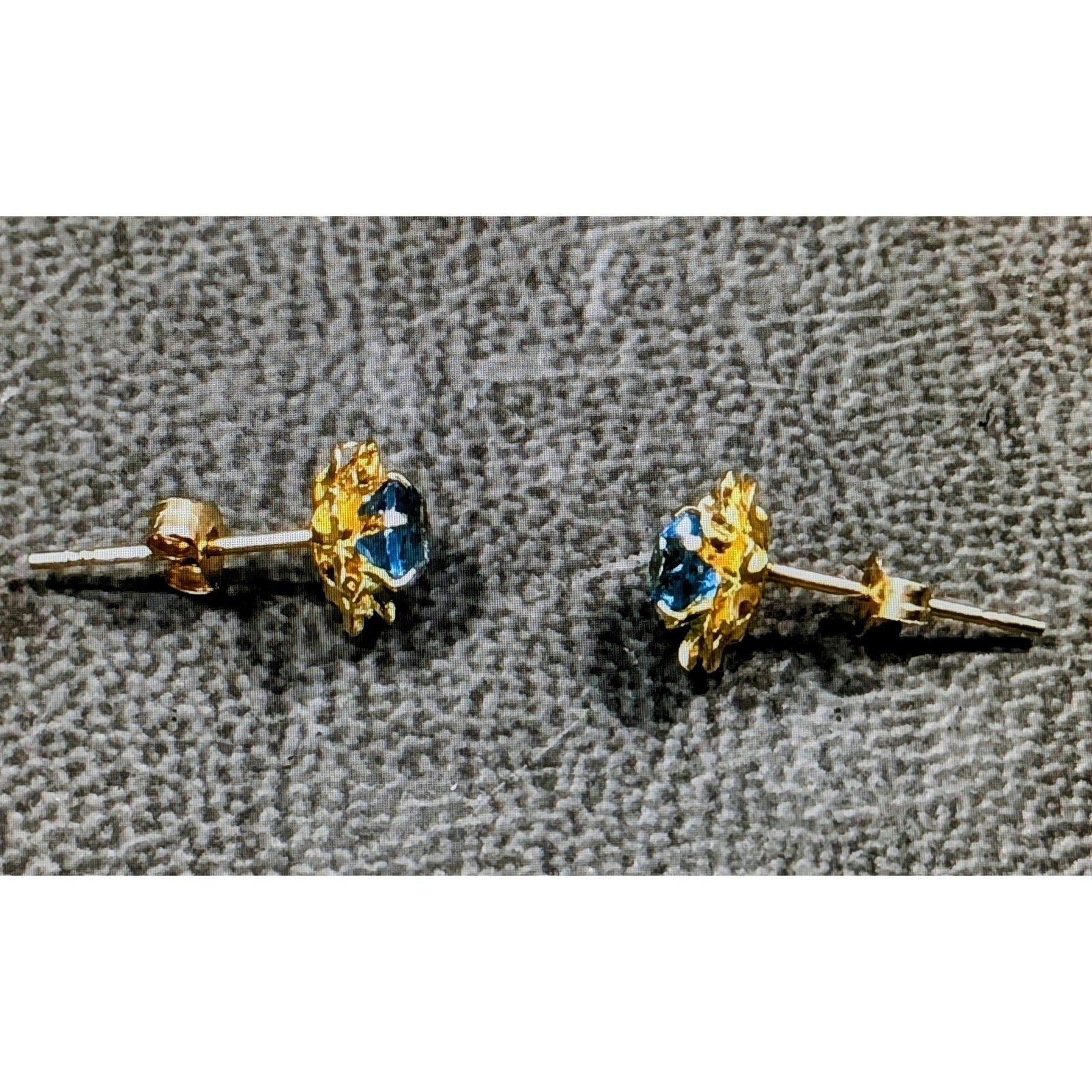 14k Yellow Gold Blue Spinel Delicate Floral Stud Earrings