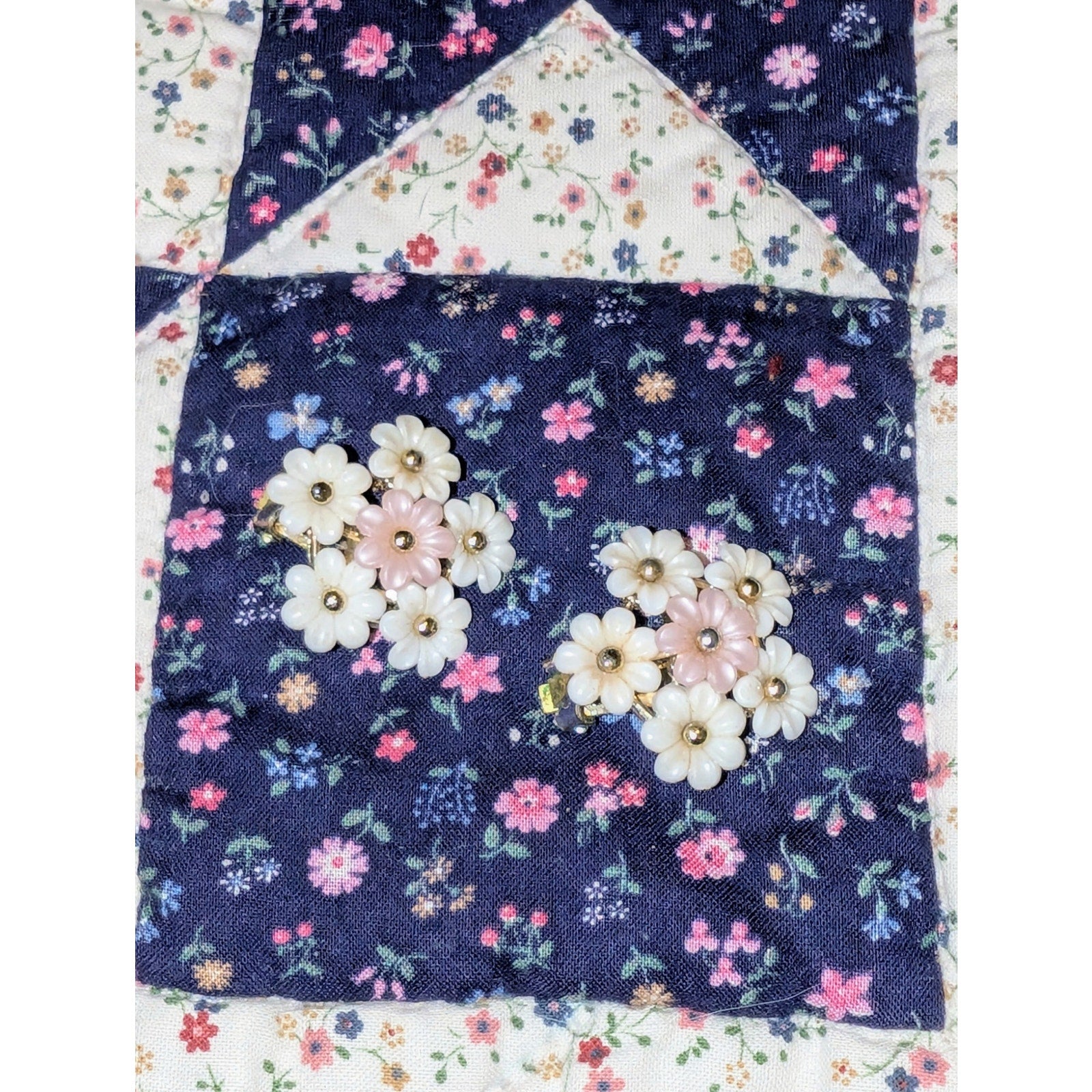 1950s Cream Pale Pink Gold Bead Pop Off Floral Clip Earrings