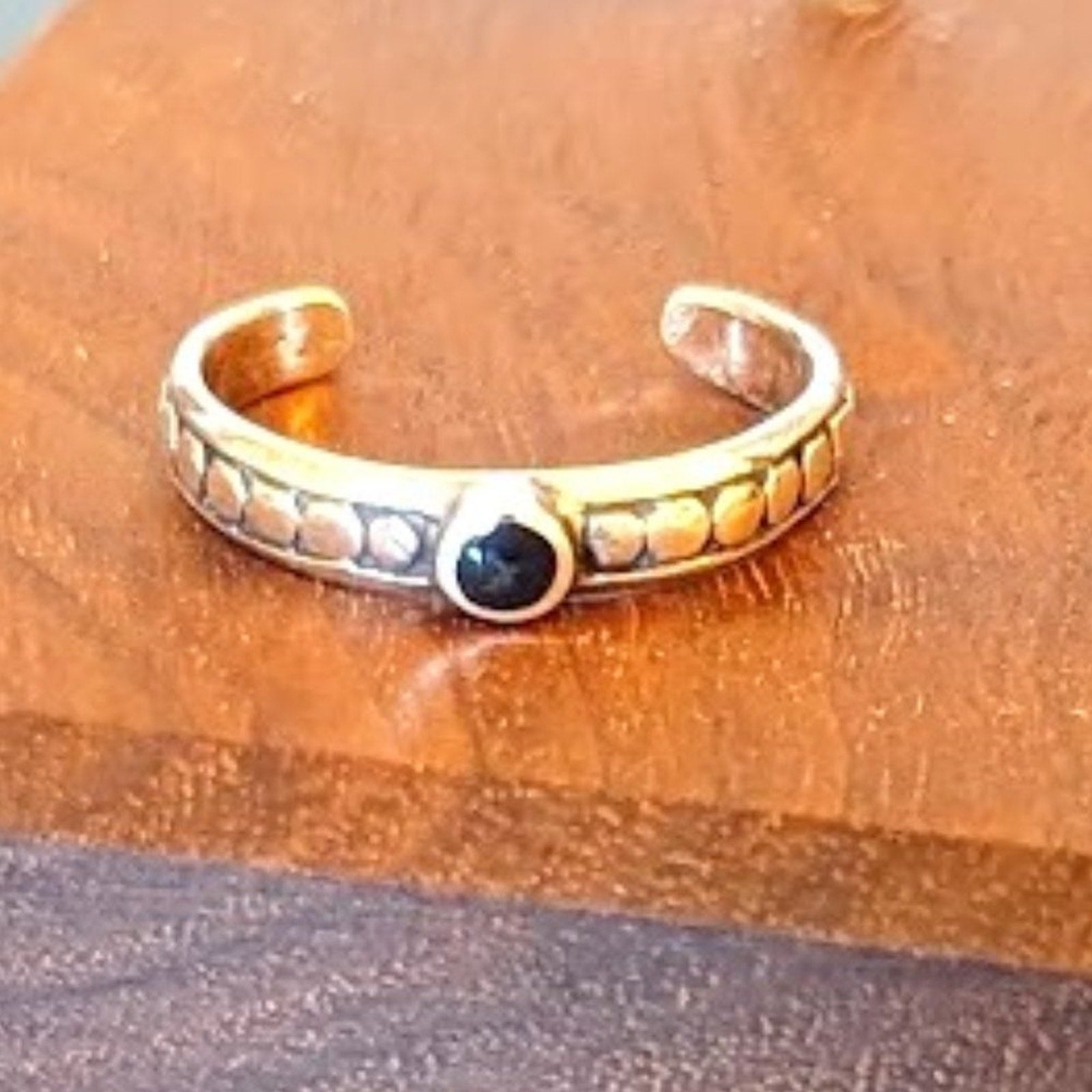 925 Bezel Set Black Stone Toe Ring Sterling Silver