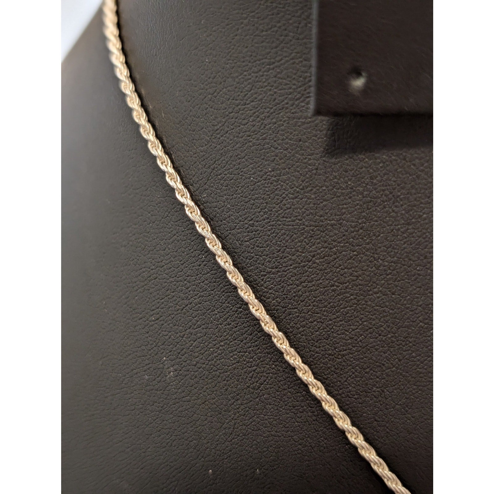 925 Sterling Amethyst Slice Crystal Pendant on Sterling Silver Rope Chain. Pendant is 1-9/16" long x 5/8" wide at the widest point. Chain measures 15.5" long. Pre-owned, this necklace is in great condition.
