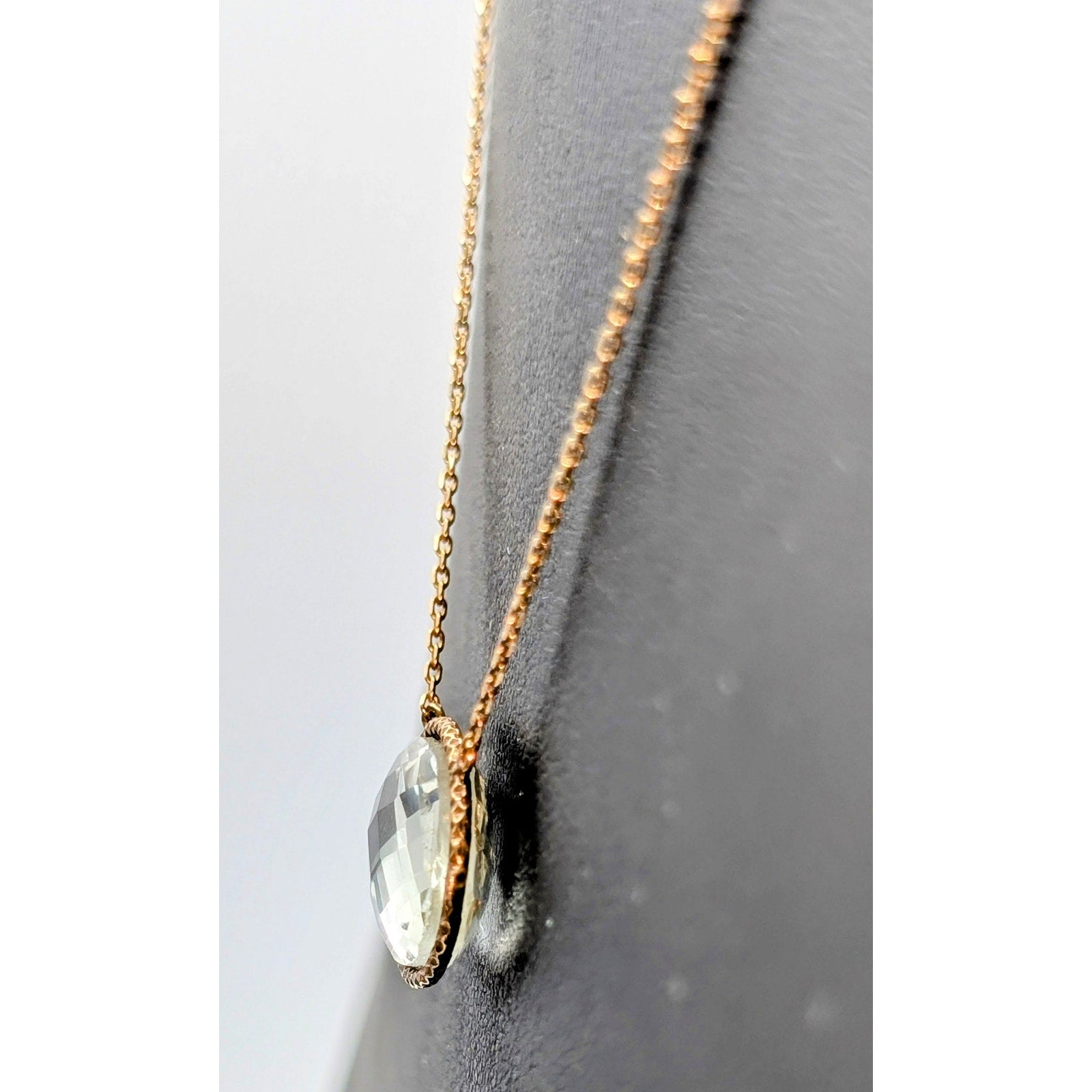 925 Sterling Gold Vermeil Faceted Bezel Set Quartz Pendant Chain Necklace