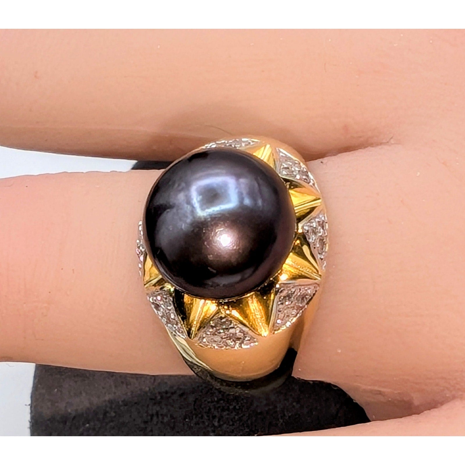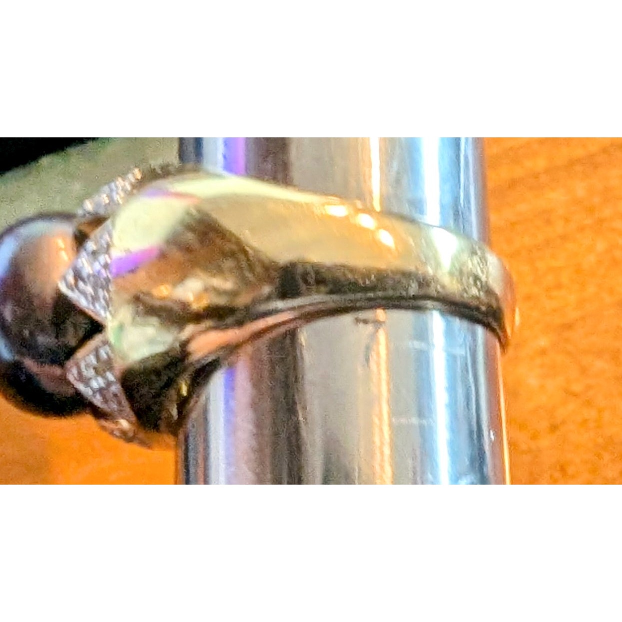 925 Sterling Gold Vermeil Purple Pearl & Diamond Accent Statement Ring Size 6.75. Pre-owned, this ring is in excellent condition. Accent stones register as diamonds.