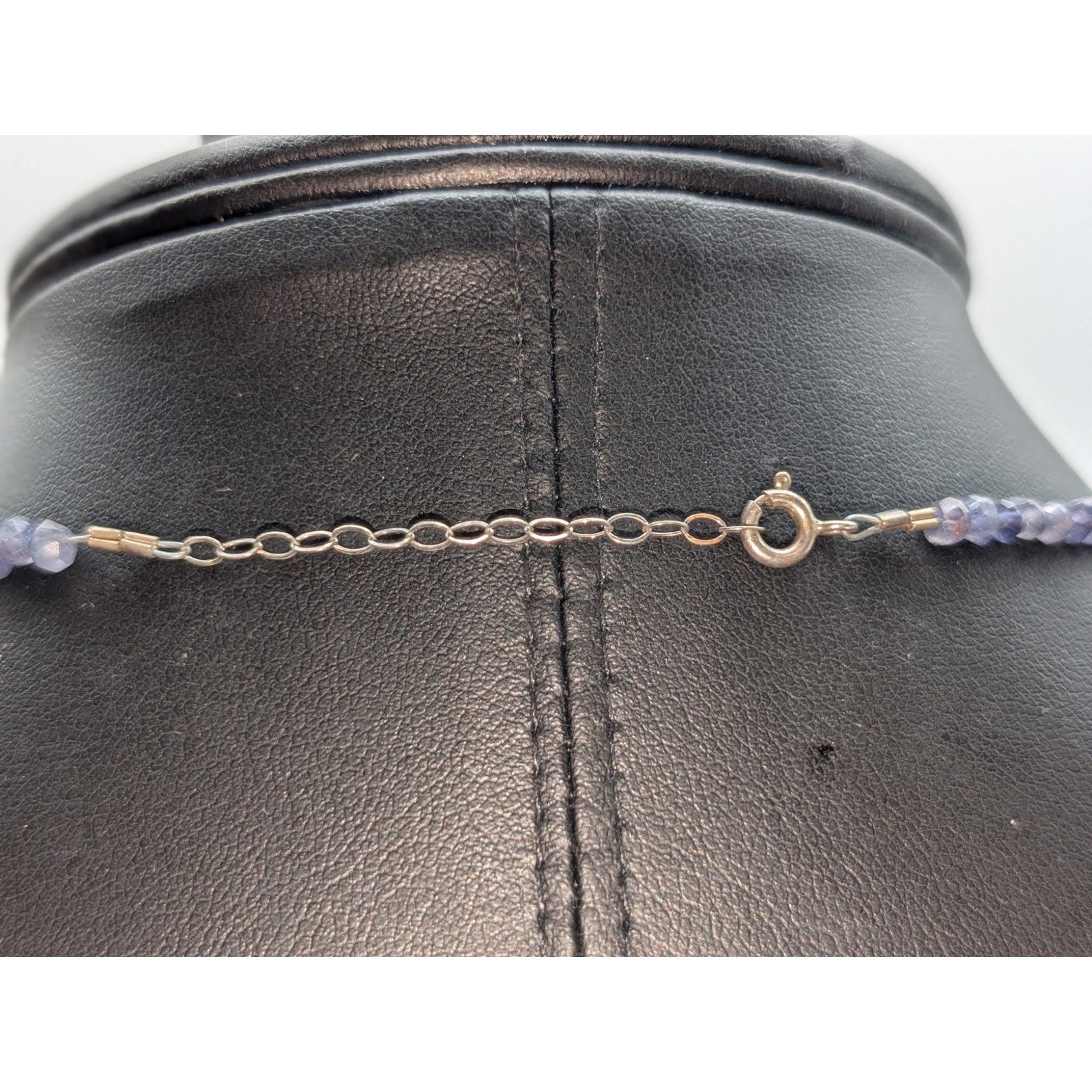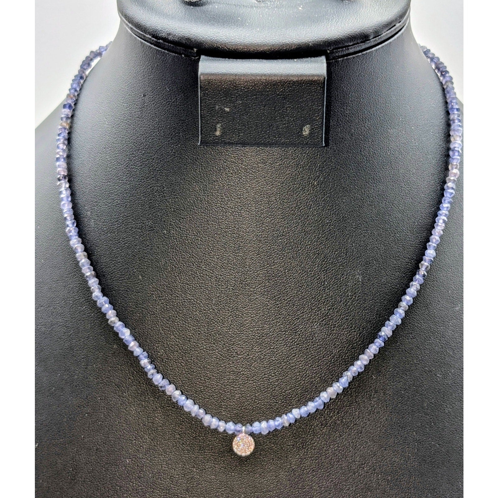 925 Sterling Silver 3mm Tanzanite Crystal Bead Medallion Pendant Necklace