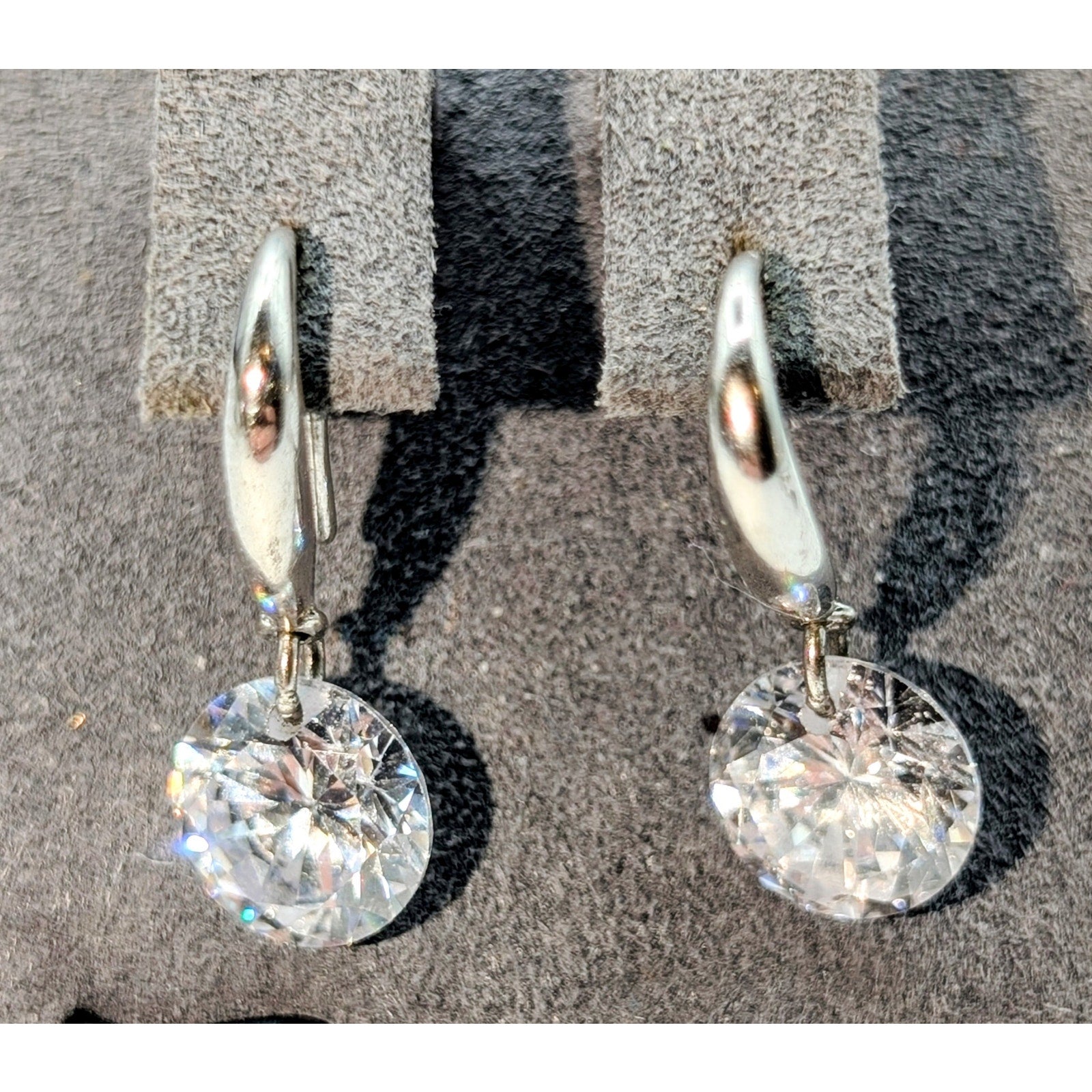 925 Sterling Silver Approx. 9mm CZ Dangle Earrings. Pre-owned, these earrings are in excellent condition.