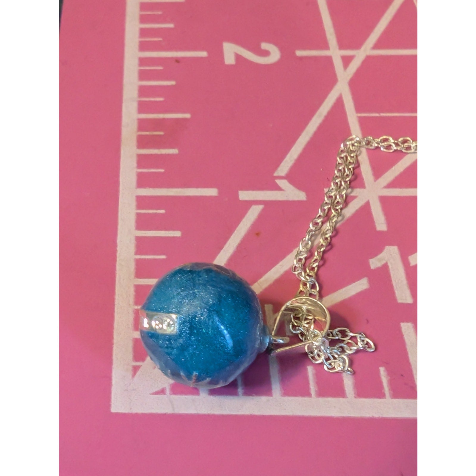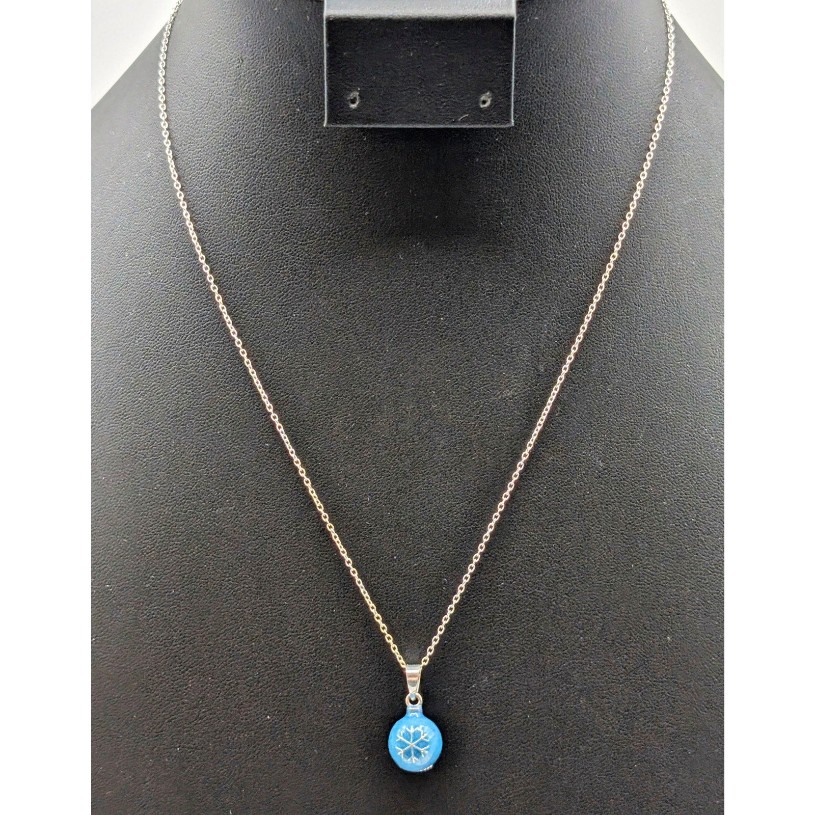 925 Sterling Silver Blue Glitter Glass Snowflake Bulb Pendant 18" Necklace. Pre-owned, this necklace is in excellent condition.