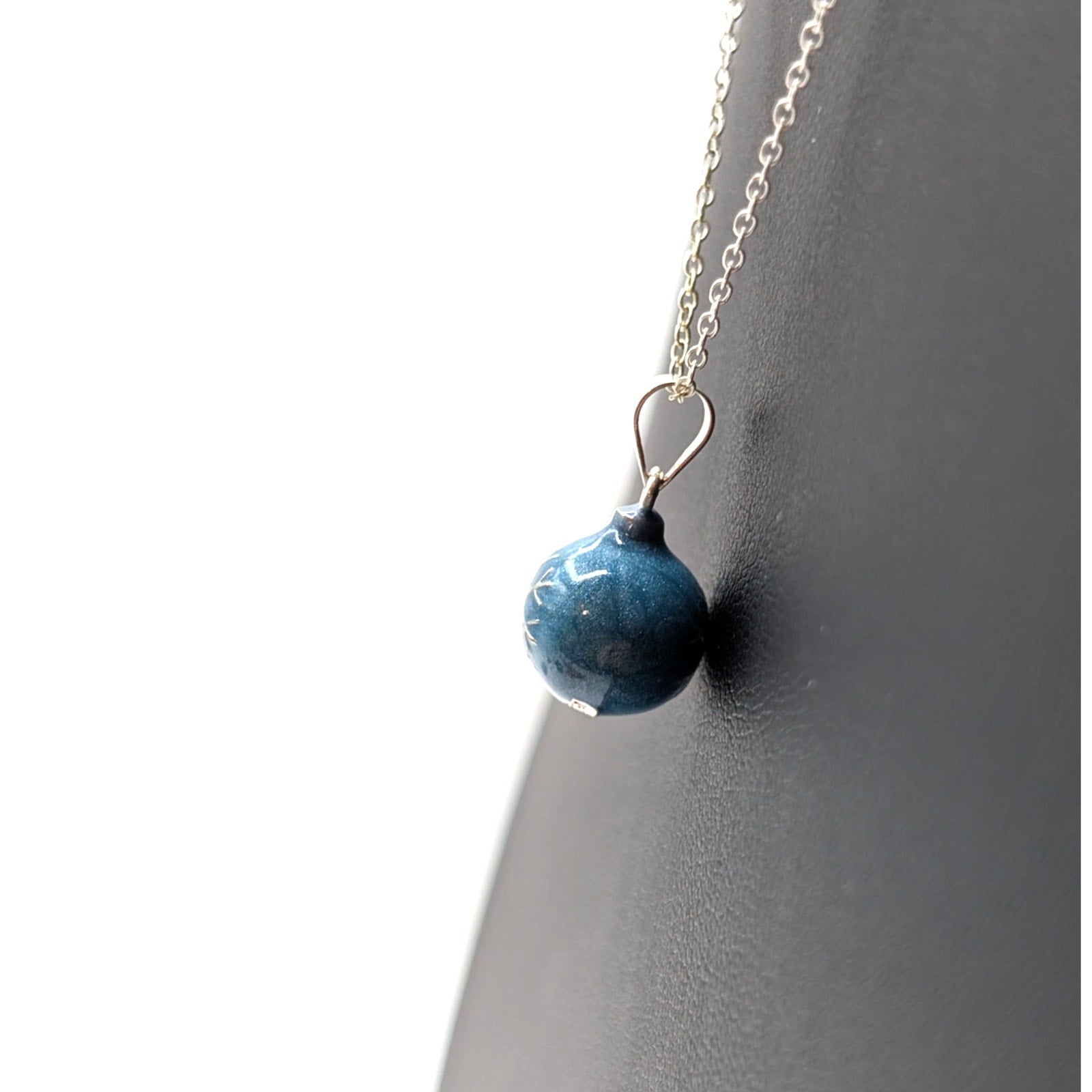925 Sterling Silver Blue Glitter Glass Snowflake Bulb Pendant 18" Necklace