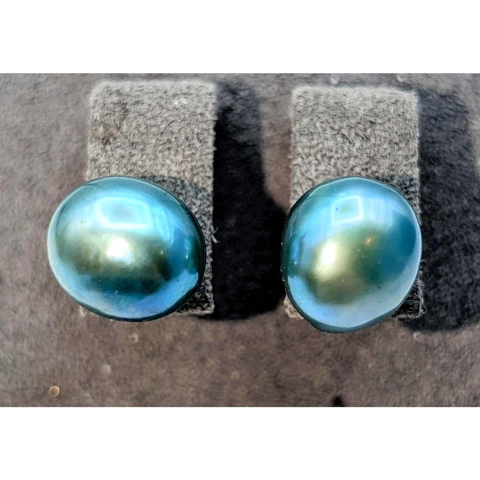 925 Sterling Silver Blue Green Freshwater 10mm Pearl Stud Earrings