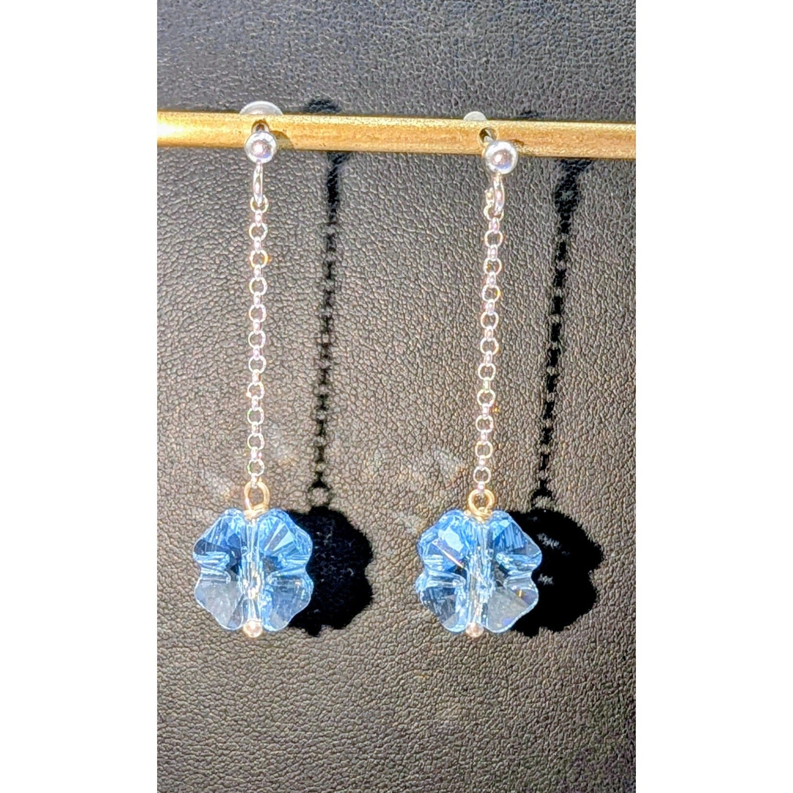 925 Sterling Silver Chain Drop Blue Crystal Flower Dangle Post Pierced Earrings. Marked and test positive for 925 sterling silver. Pre-owned, these flower dangle earrings are in excellent condition. Often, my photos are enlarged to show detail on my jewelry listings. See measurement board for accurate size. Photos are part of the description.