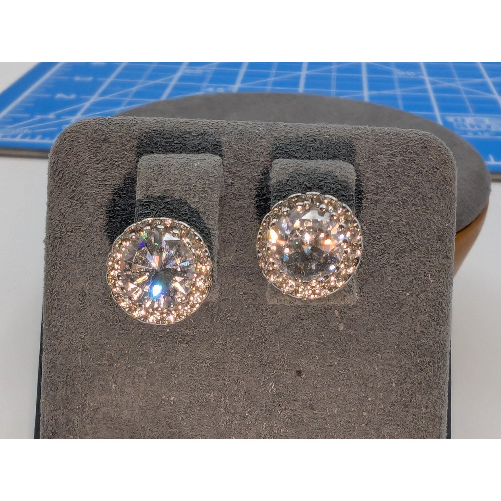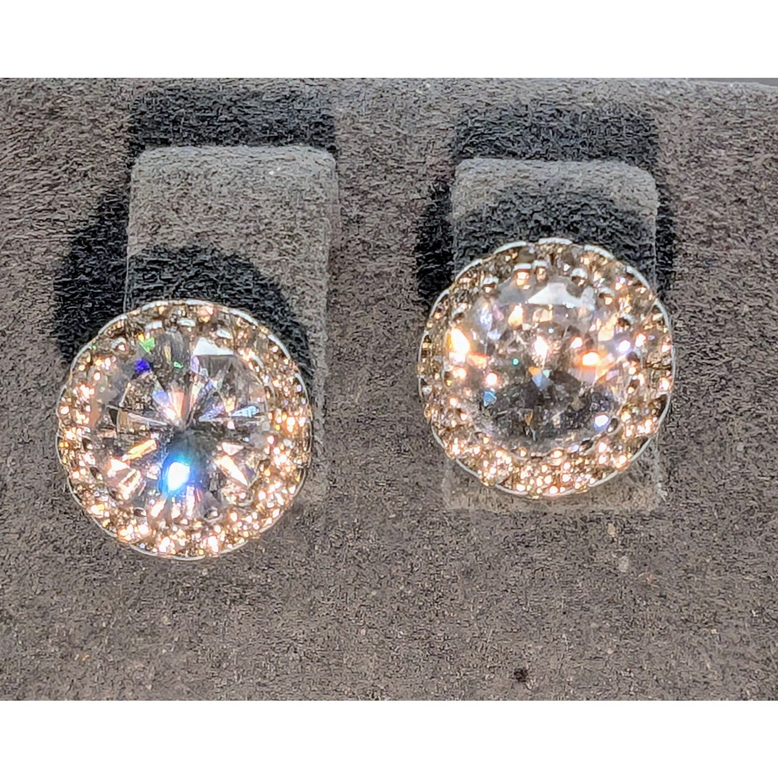 925 Sterling Silver Large CZ Halo Surround Raised Basket Setting Stud Post Earrings. Pre-owned, these earrings are in excellent condition. Real sparklers!