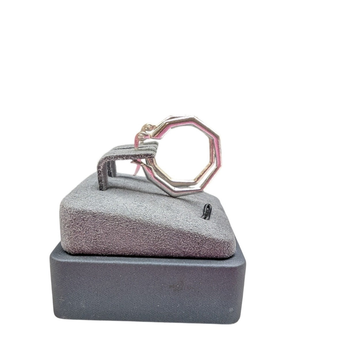 925 Sterling Silver Hexagon Hoop Earrings. Snap down closure. Pre-owned, these earrings are in excellent condition.