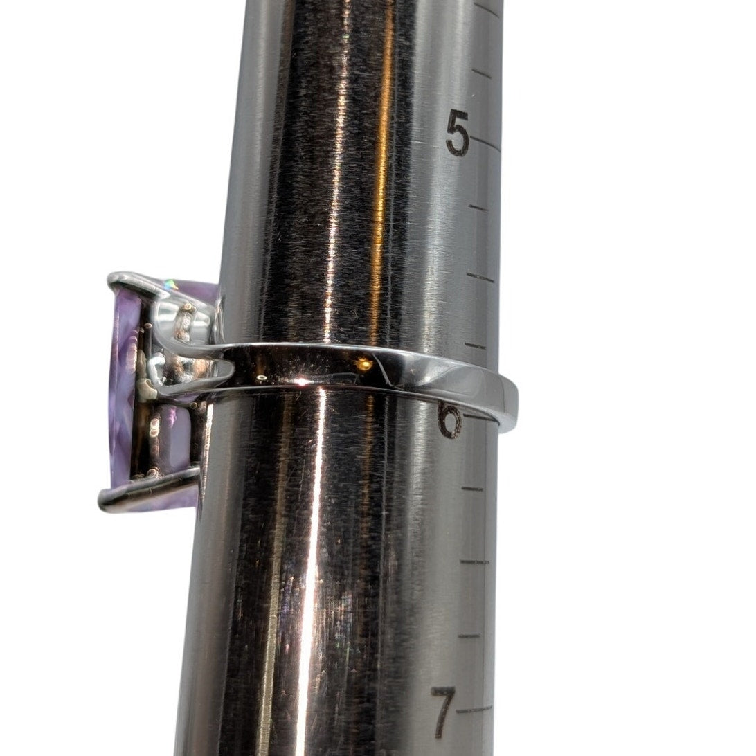 925 Sterling Silver Lavender Checkerboard Cut Rectangular Glass Stone Ring Sz 6