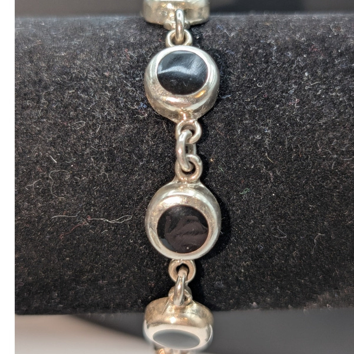 925 Sterling Silver Mexico Black Onyx Box Clasp Vintage Bracelet. Pre-owned, this bracelet is in excellent vintage condition.