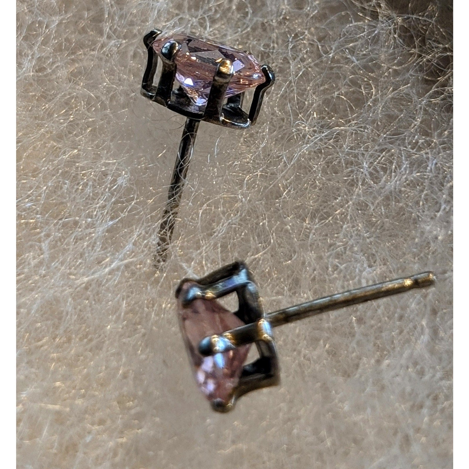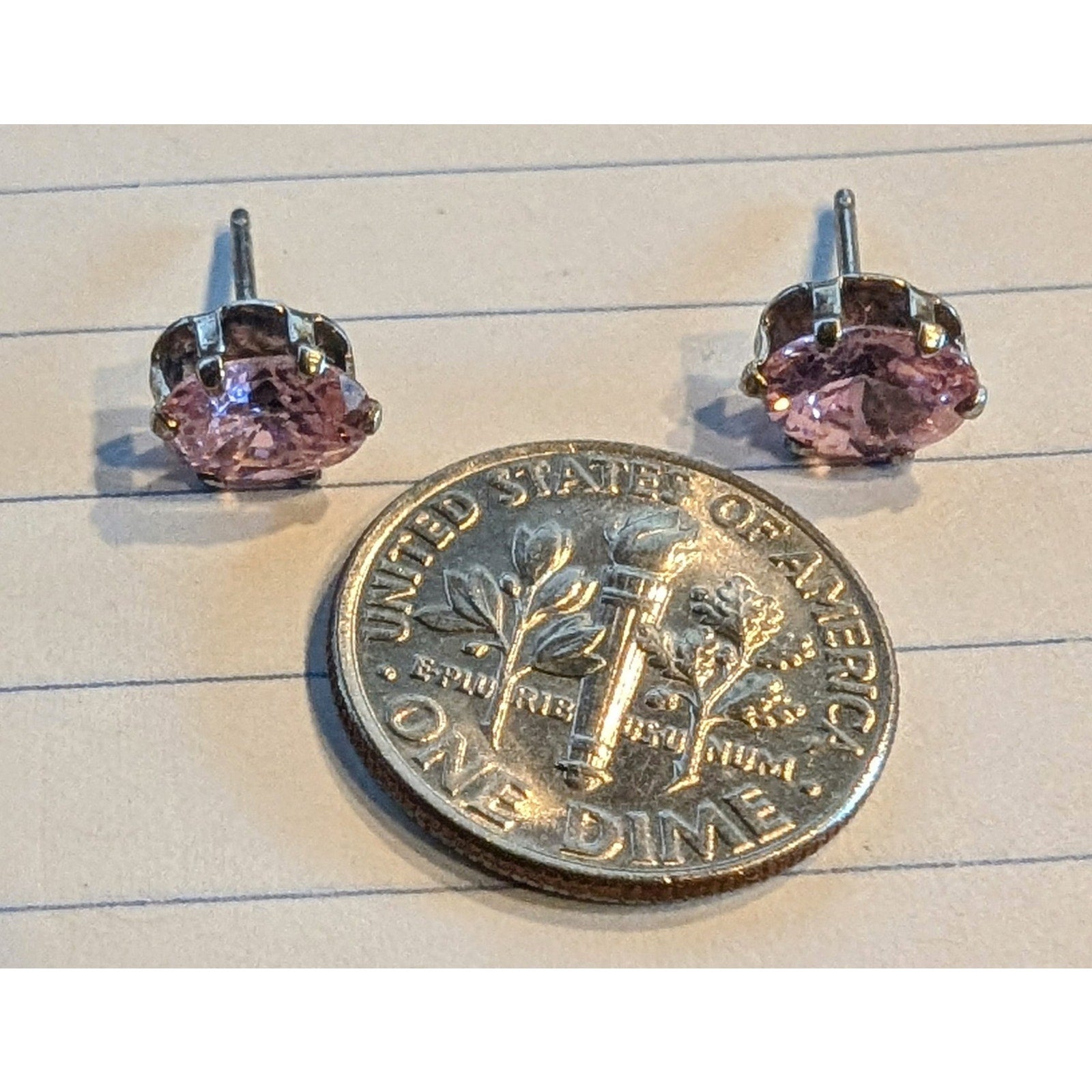 925 Sterling Silver Pale Fiery Pink Oblong CZ Stud Earrings. Pre-owned, these earrings are in excellent condition.