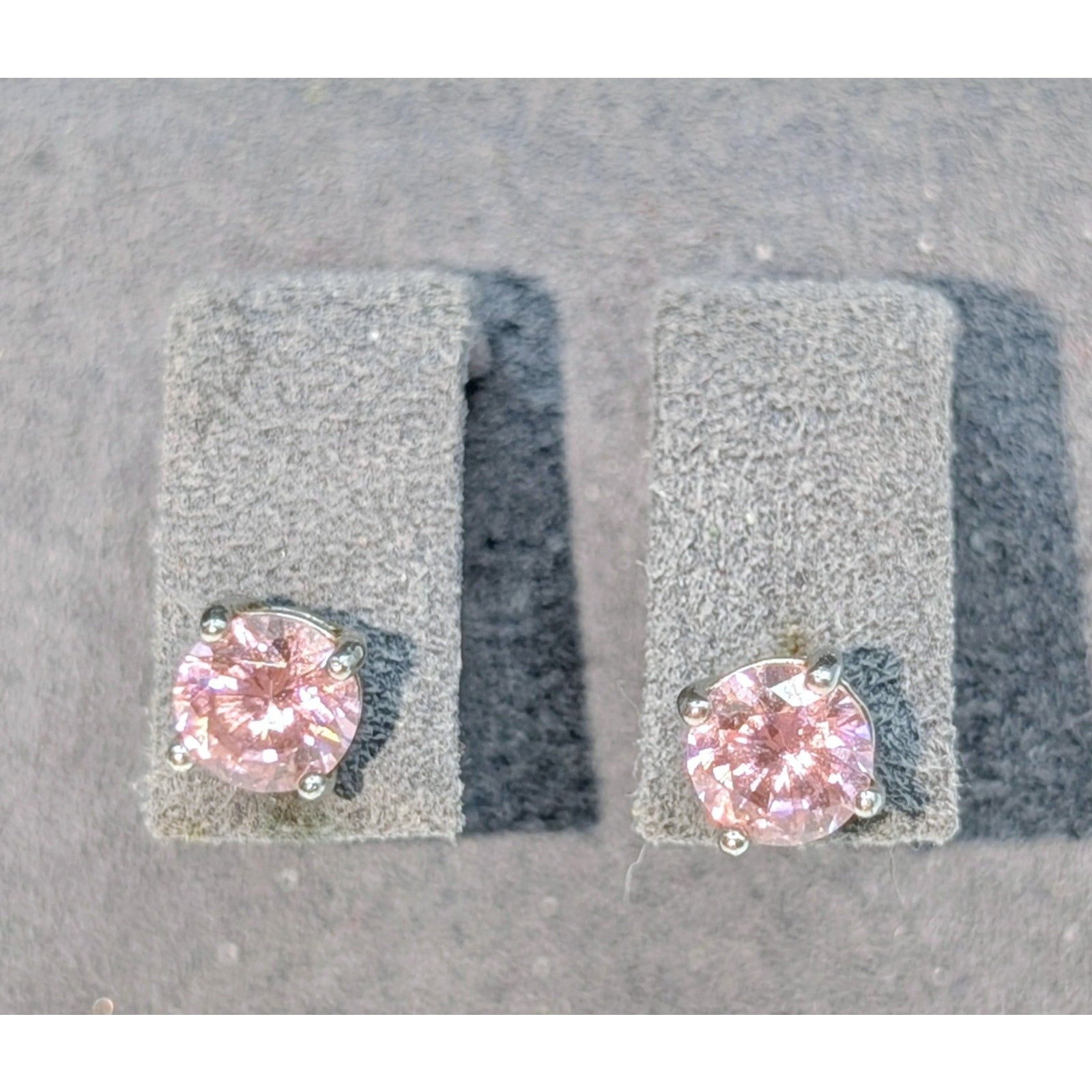 925 Sterling Silver Pink Crystal Stud Earrings. Pre-owned, these earrings are in good condition with minimal wear.