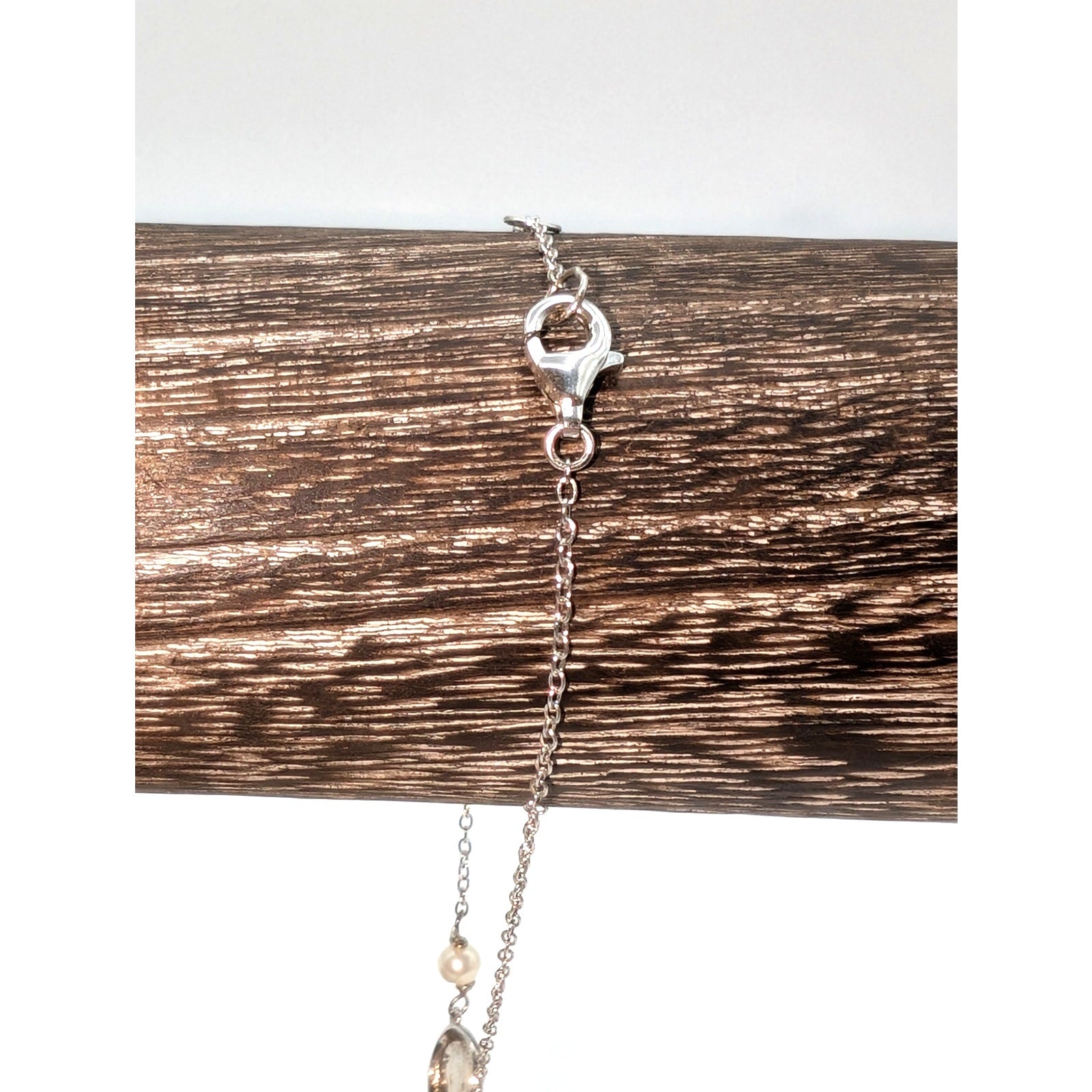 925 Sterling Silver QG Cross Charm Pearl CZ Chain Link Lobster Claw Bracelet. Delicate, and a lovely way to show your faith. Measures 6.75" and 7.25". Those are where the two jump rings are located. Pre-owned, this bracelet is in excellent condition.