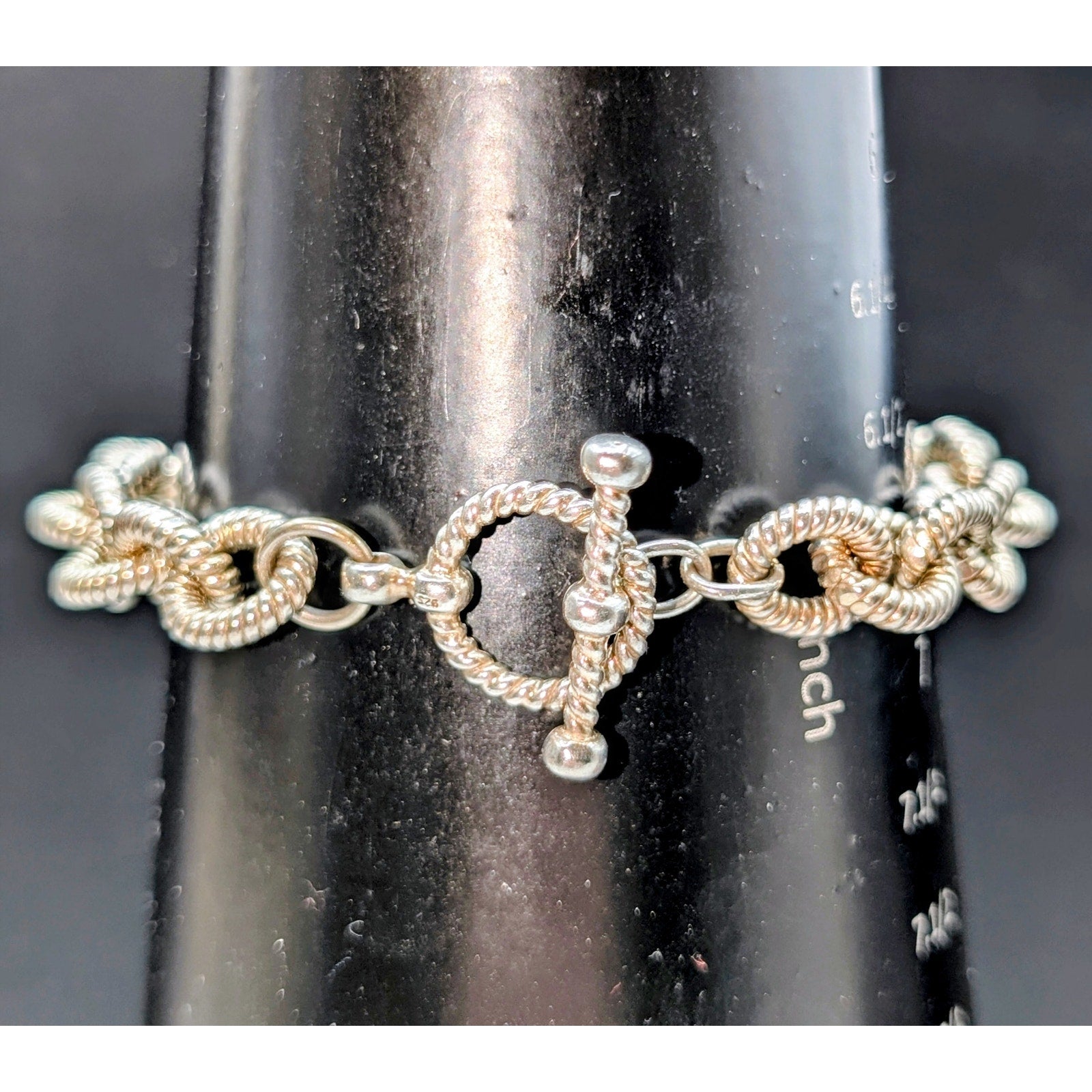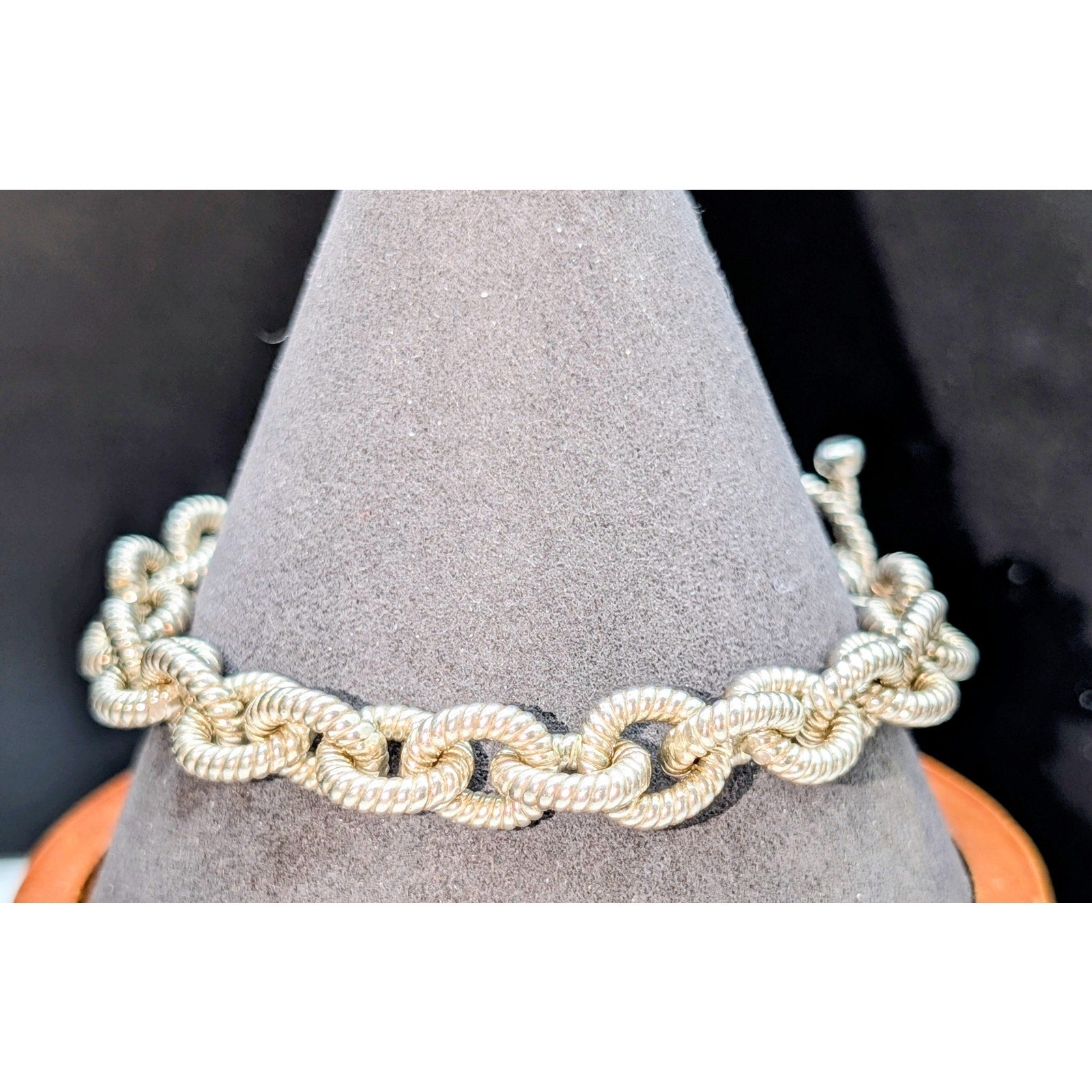 925 Sterling Silver Ribbed Chain Link Toggle Clasp Bracelet 38.31g. Pre-owned, this bracelet is in excellent condition.