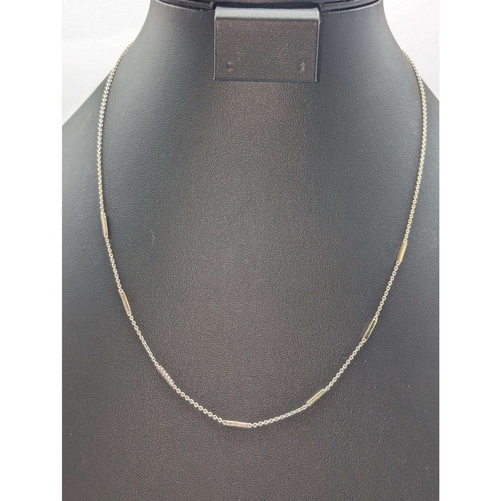 925 Sterling Silver Scattered Seven Bar Chain 18" 19" & 20" Necklace. Pre-owned, this necklace is in excellent condition. Can be fastened at 18", 19" or 20" jump rings.
