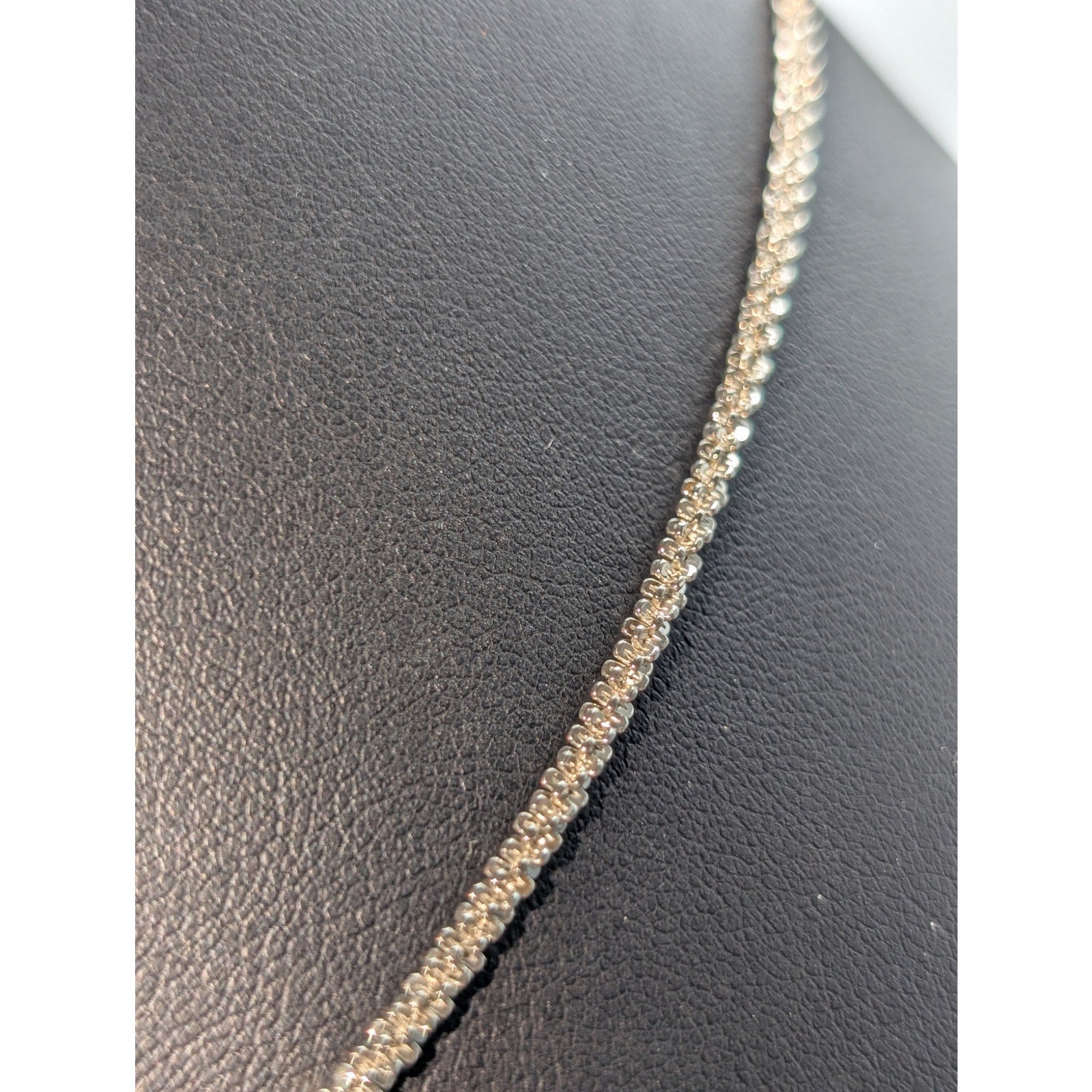 925 Sterling Silver Sparkle Glitter Margarita 2.8mm Chain 19" Necklace. Pre-owned, this sparkling sterling silver necklace is in excellent condition. Tested for sterling. Often, my photos are enlarged to show detail. Photos are part of the description.