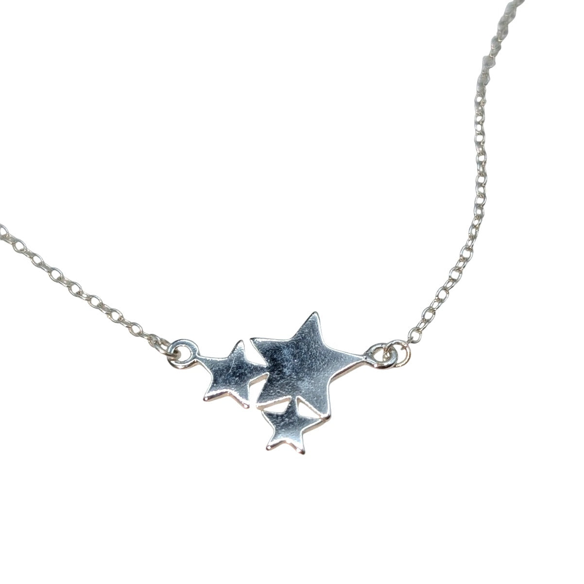 925 Sterling Silver Three Star Multi-Size Ankle Bracelet. This anklet has two rings for two different sizes. I have put them both on the bracelet cone to show you. Spring ring clasp. Dainty and really cute! Pre-owned, this ankle bracelet is in excellent condition.