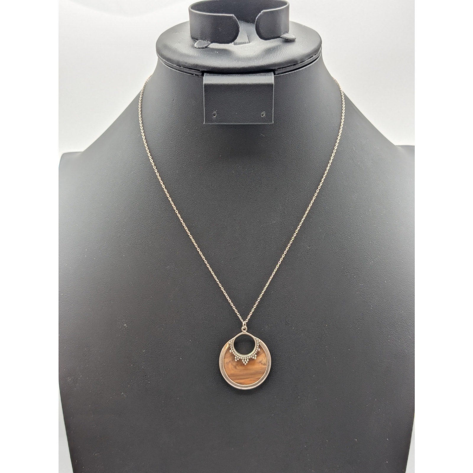 925 Sterling Silver Wood Grain Bali Disk Pendant 18" Necklace. Pre-owned, this necklace is in excellent condition. Boho.