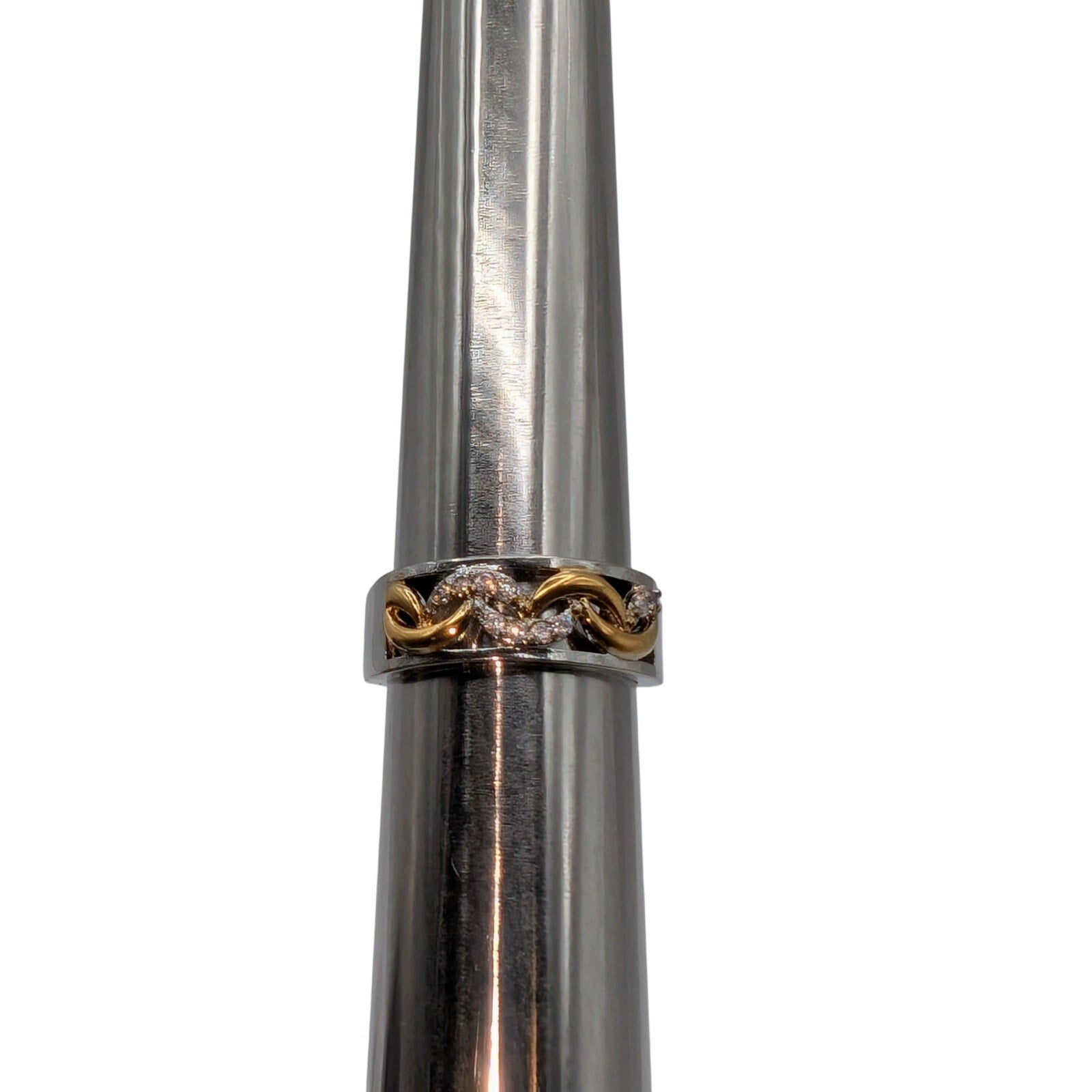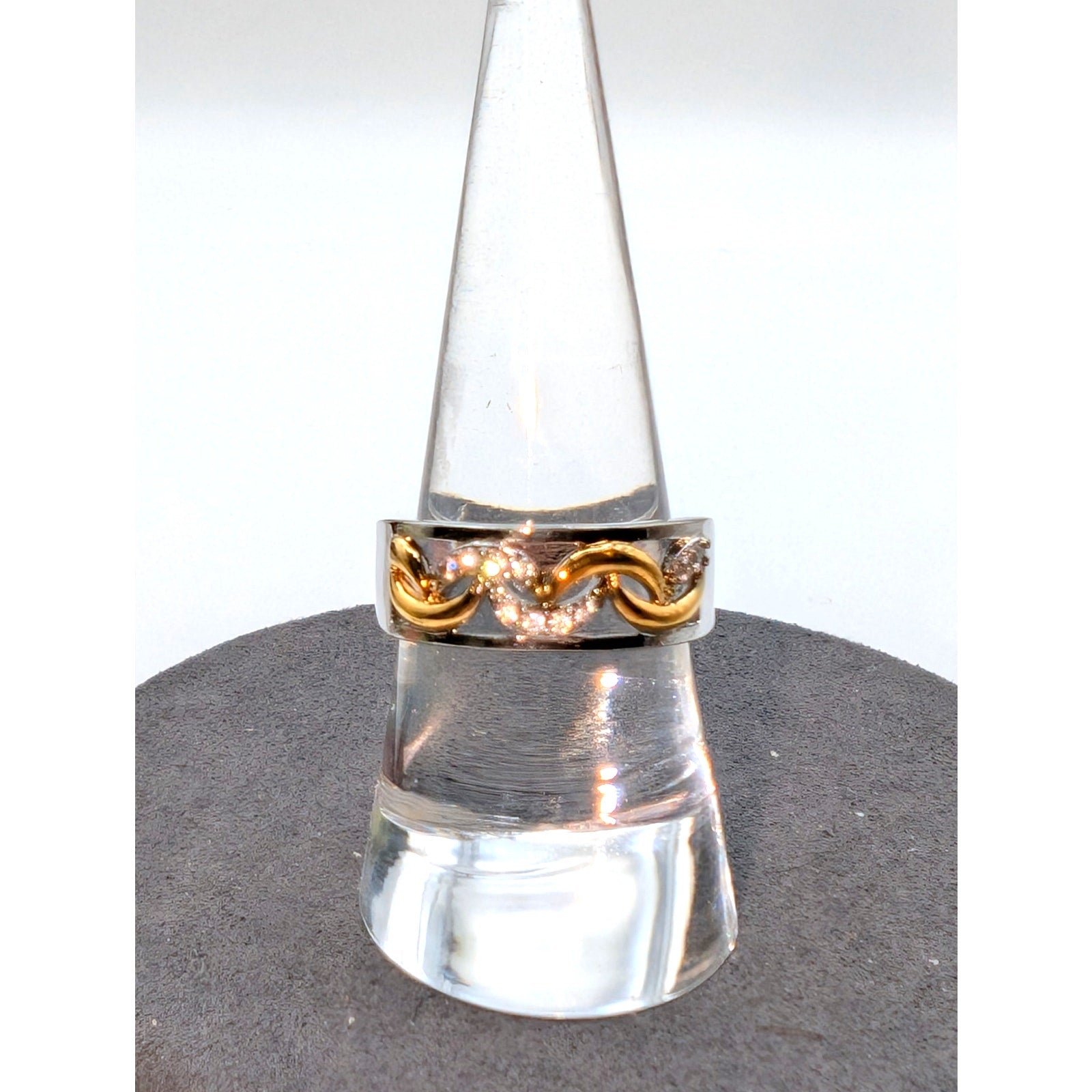 925 Sterling Two Tone Wavy CZ Ring Size 7.5. Pre-owned, this ring is in excellent condition.
