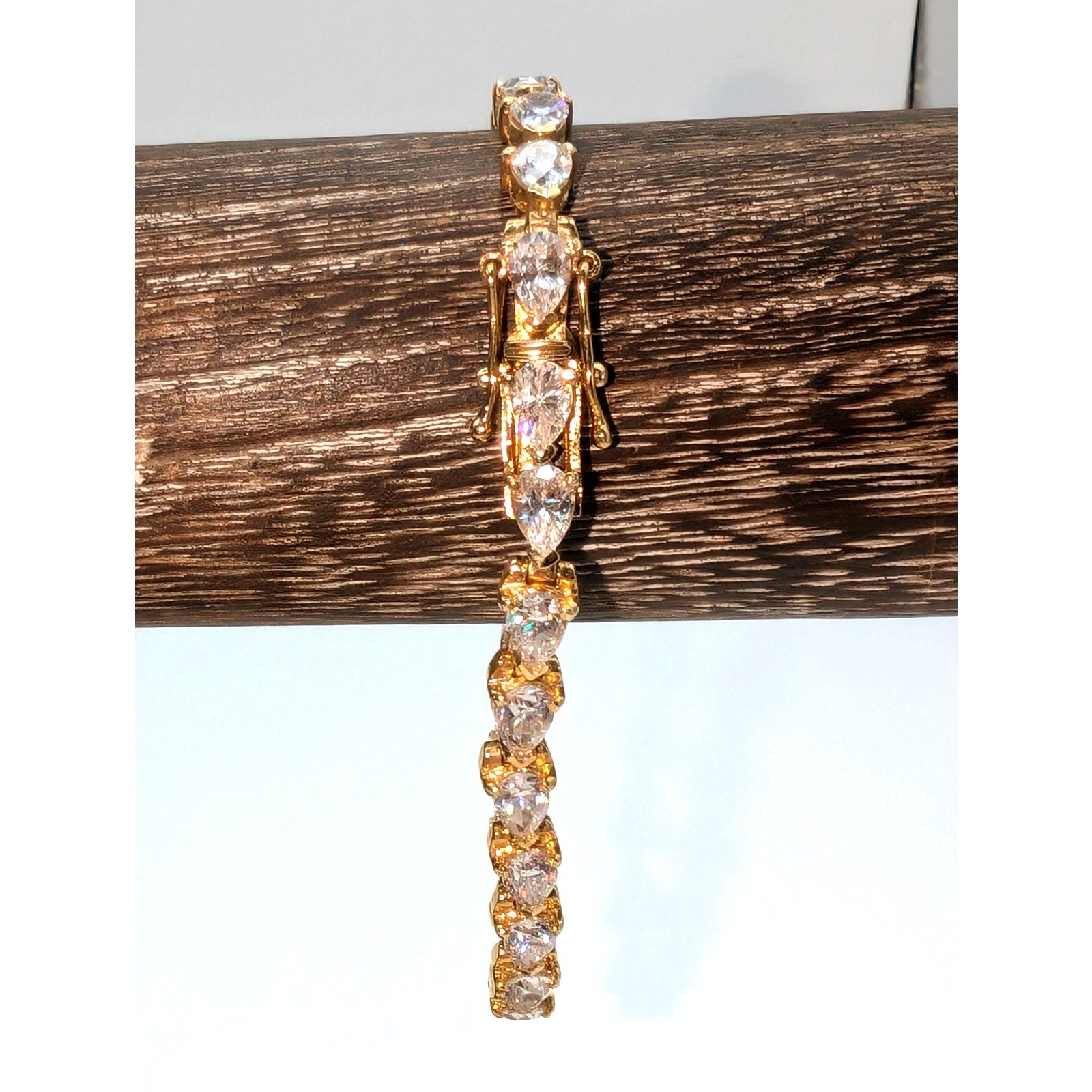 925 Sterling Vermeil Teardrop CZ Tennis Bracelet. Pre-owned, this tennis bracelet is in excellent condition.