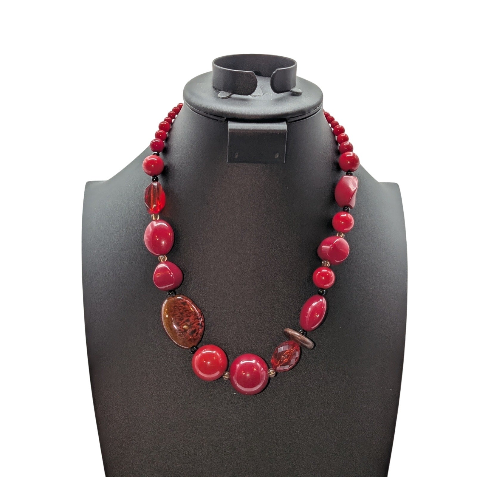 Acrylic Ceramic Wood Red Bead 18"-21" Necklace. Pre-owned, this necklace is in great condition. There is an 'N' on the hangtag but I'm not sure what that brand is.