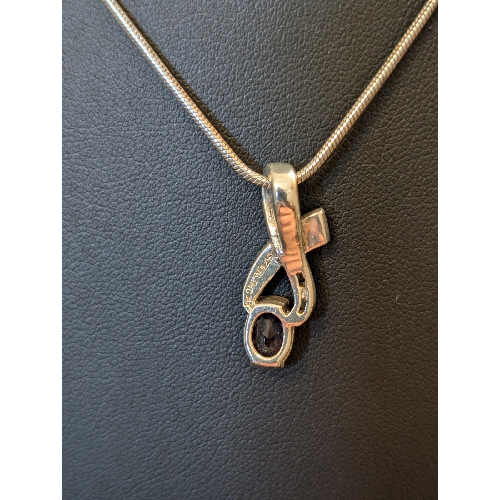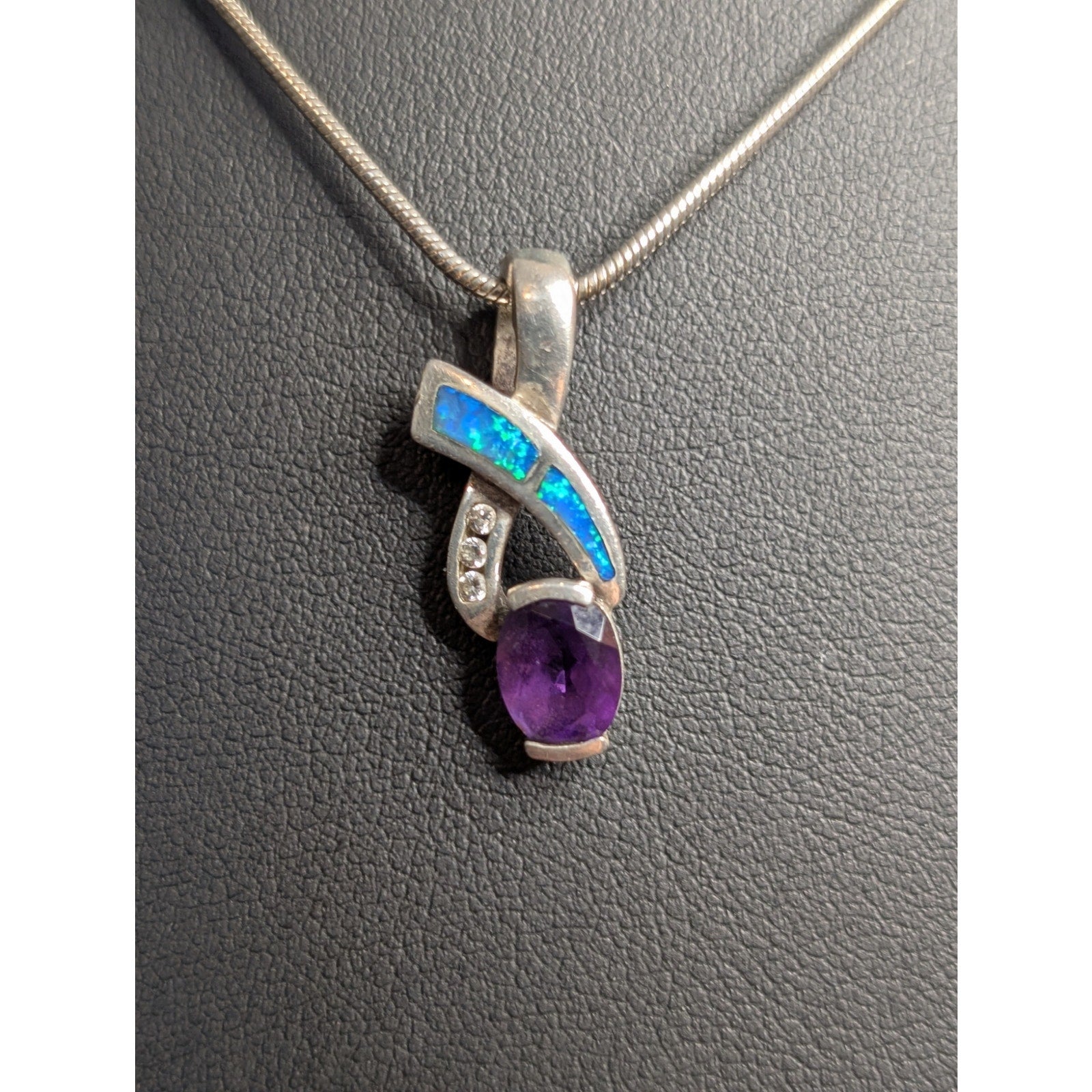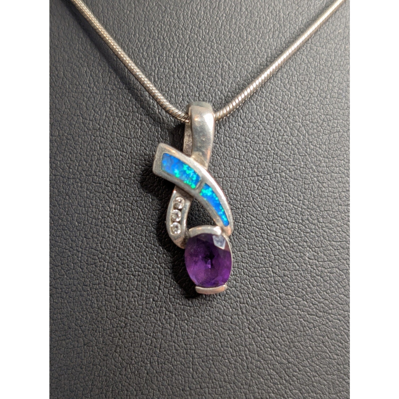 AK Atasay Kuyumculuk Sterling Opal Inlay Amethyst Clear Stone Pendant Necklace