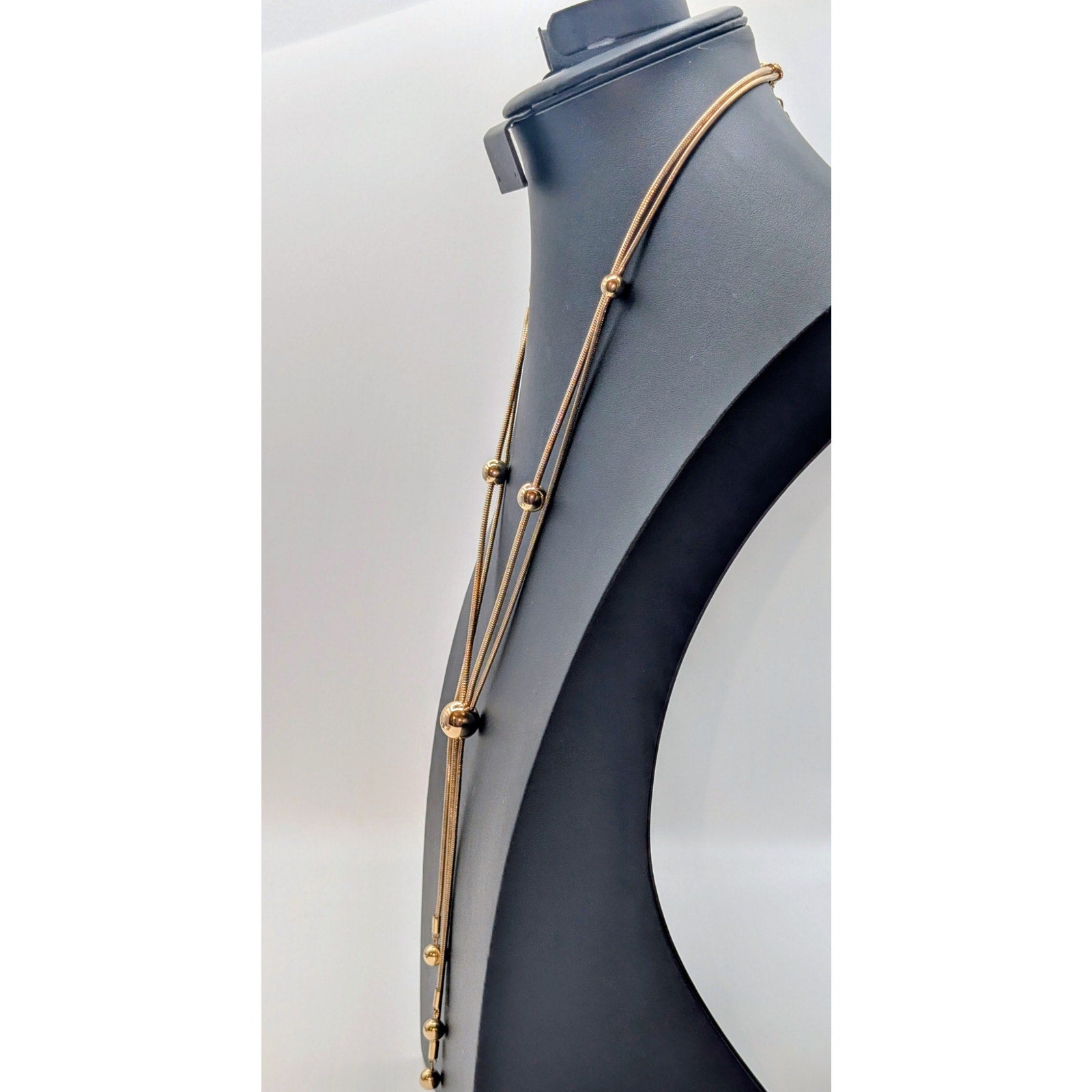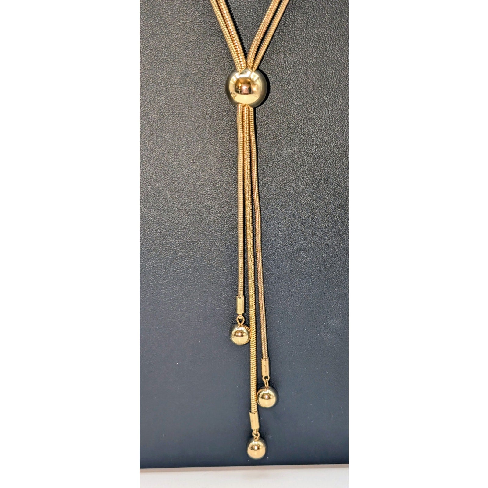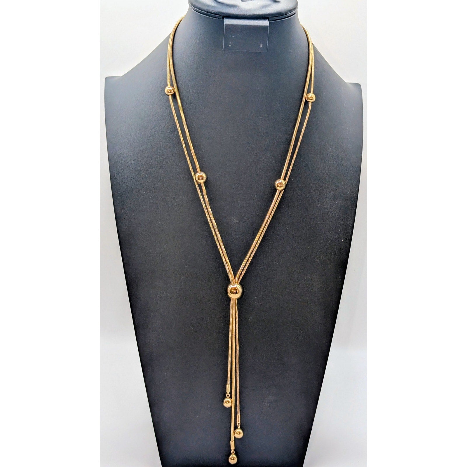 Alfani Gold Tone Double Strand Ball Bead Tassel Snake Chain 24"-26" Necklace. Pre-owned, this necklace is in excellent condition.