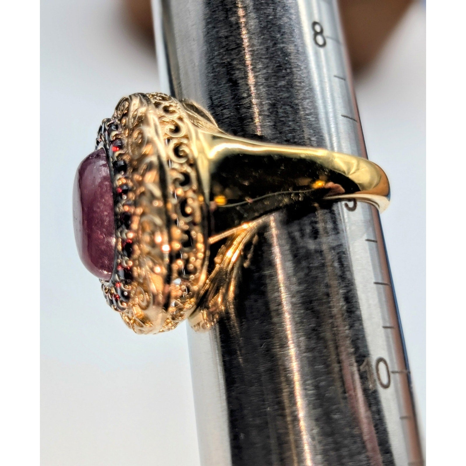All Stones Test as Ruby 925 Sterling Vermeil Scroll Statement Ring Size 9