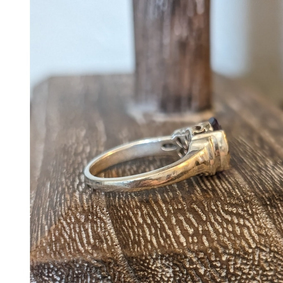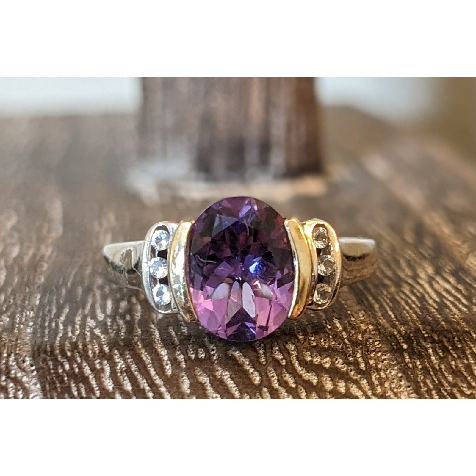Amethyst White Spinel 925 14K Partial Bezel Set Ring Size 7.5. Pre-owned, this lovely ring is in great condition. Two Toned 925 and 14K.