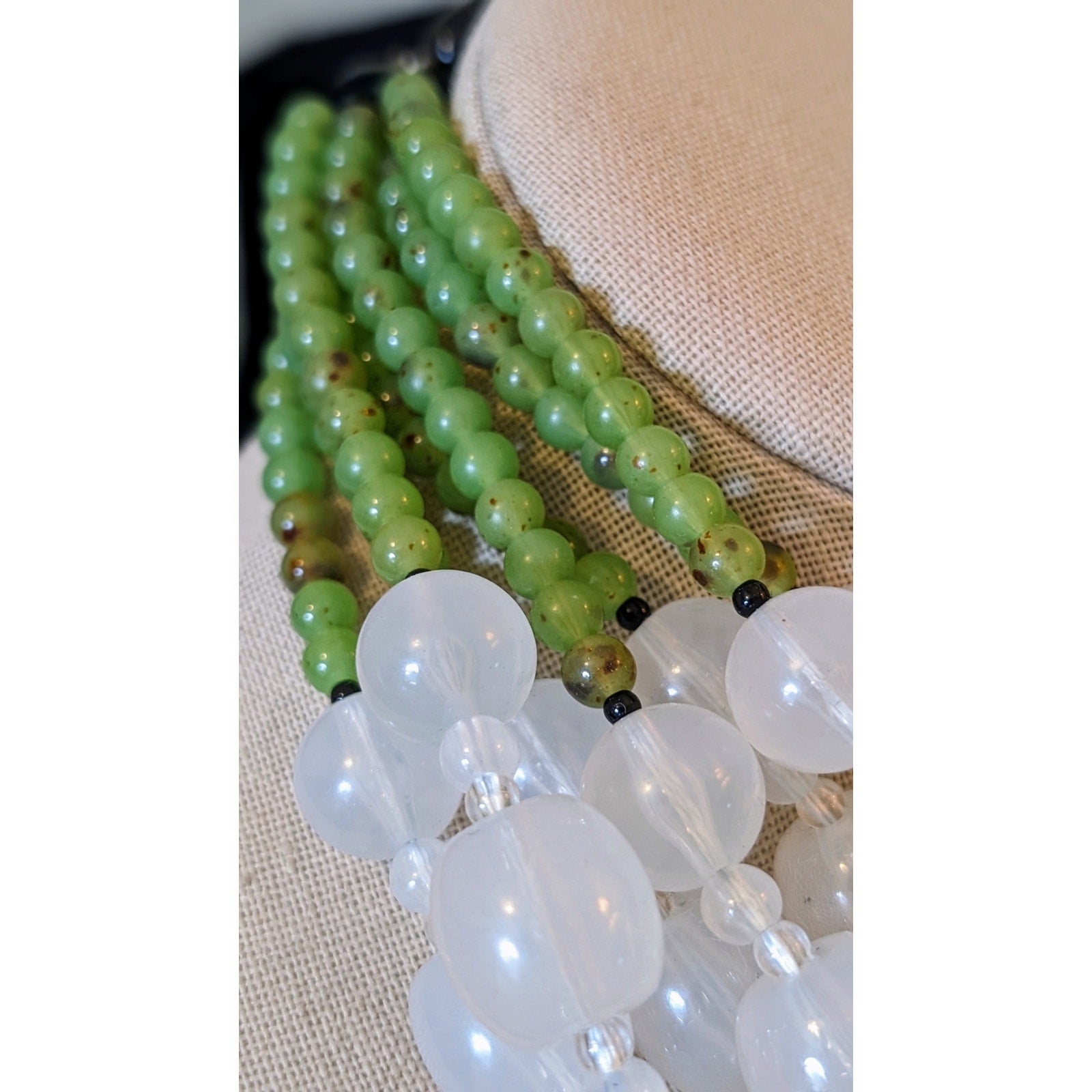 Angela Caputi Seven Strand Semi-Opague Clear & Light Green Acrylic Bead Necklace