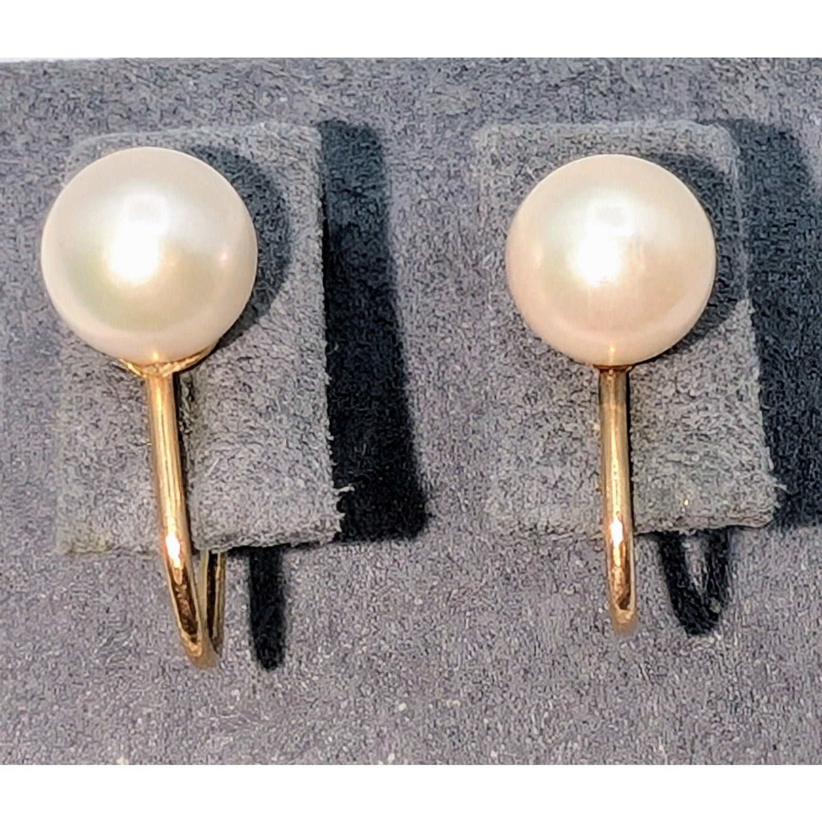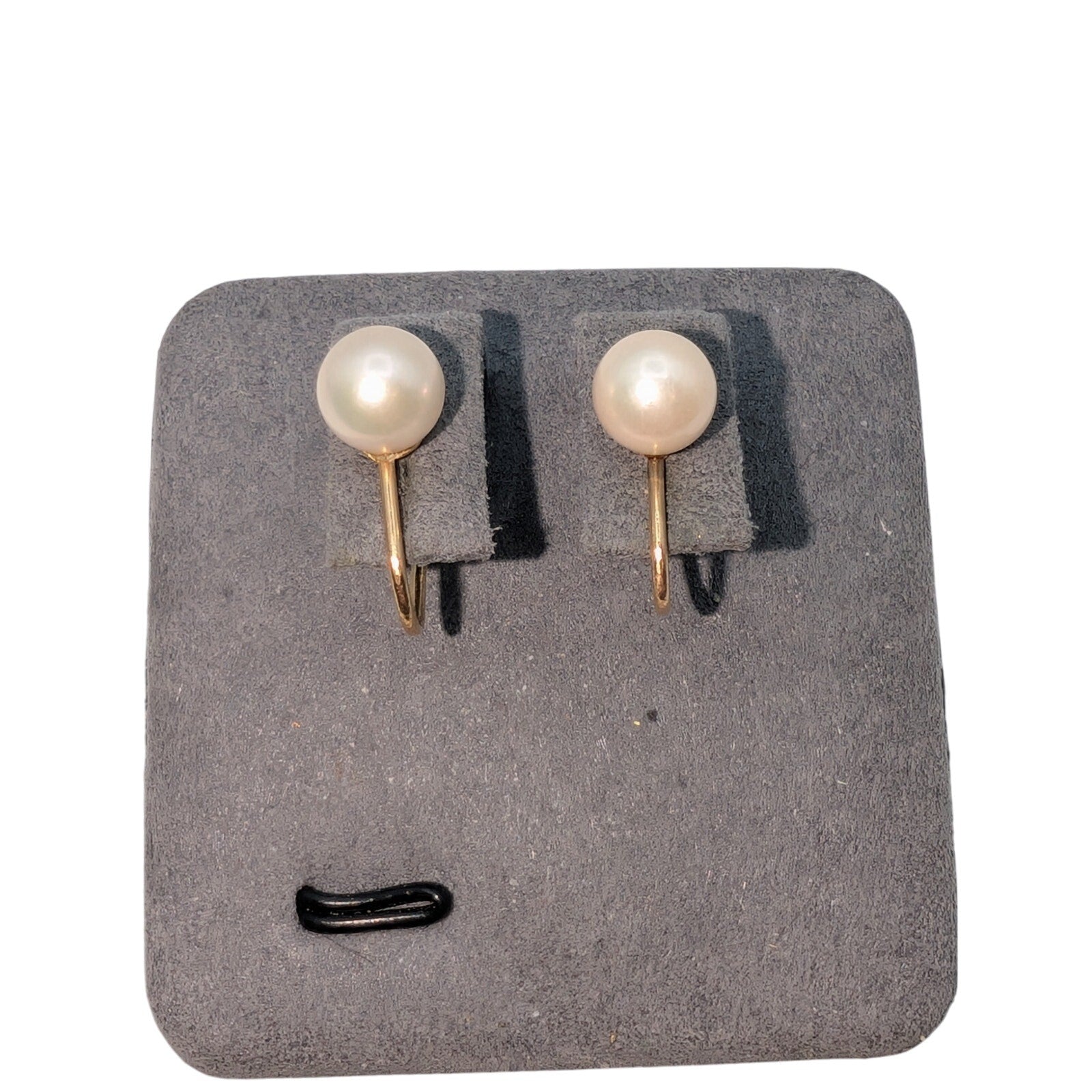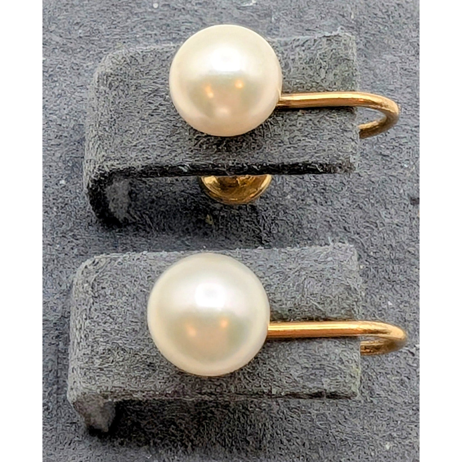 Antique 14k Gold Approximately 7mm Cultured Pearl Screw Back Earrings 1.9g