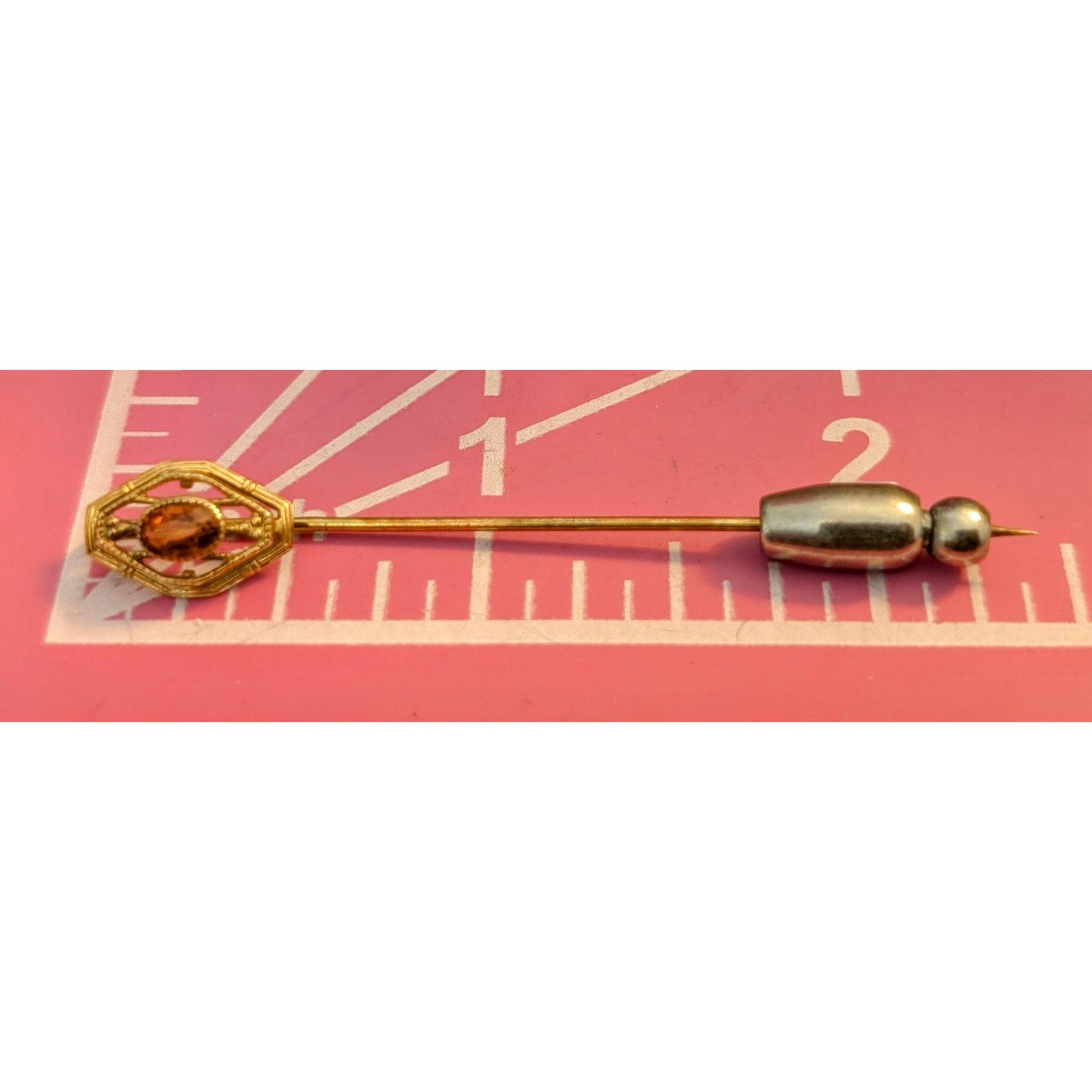 Antique 14K Yellow Gold Tourmaline or Citrine Stick Pin