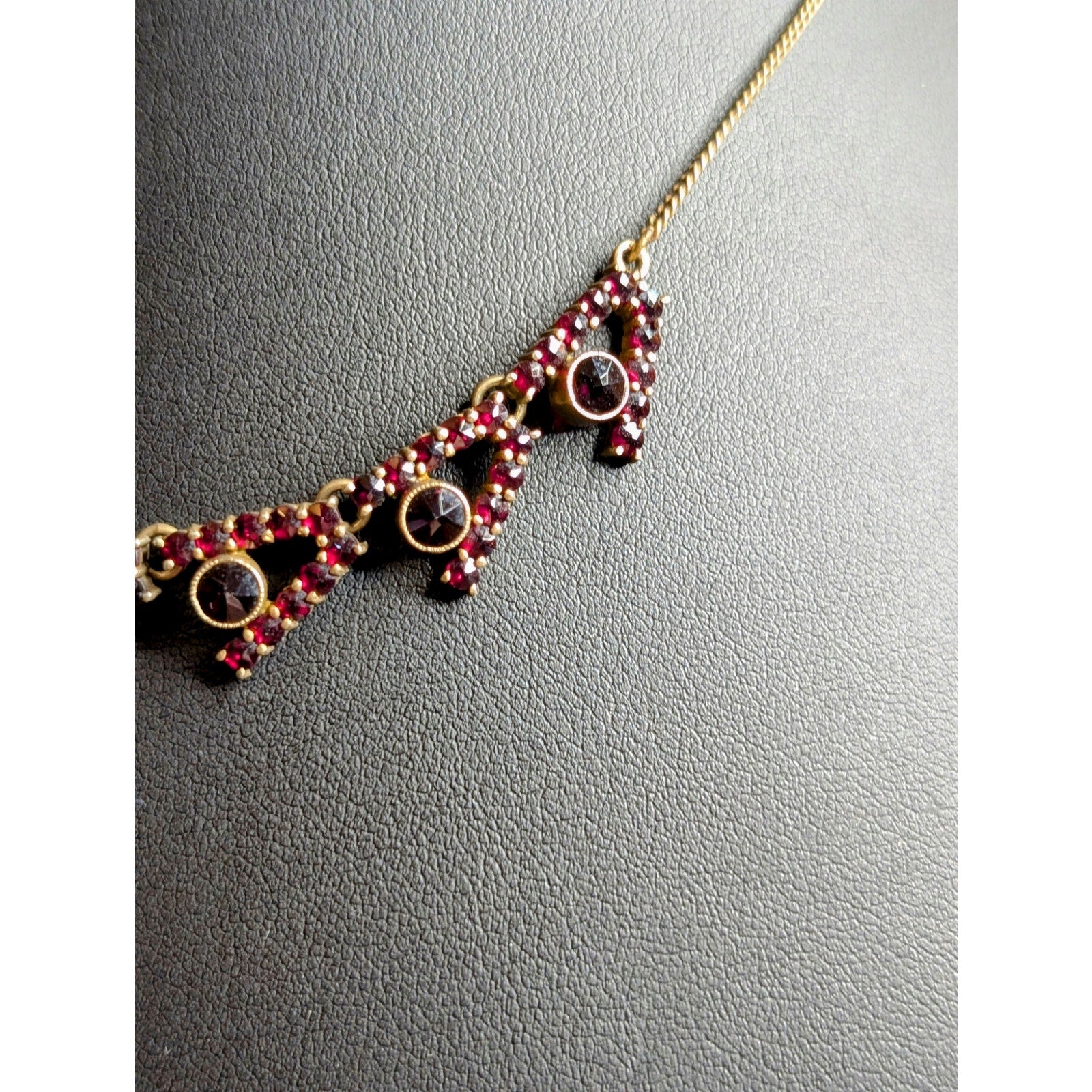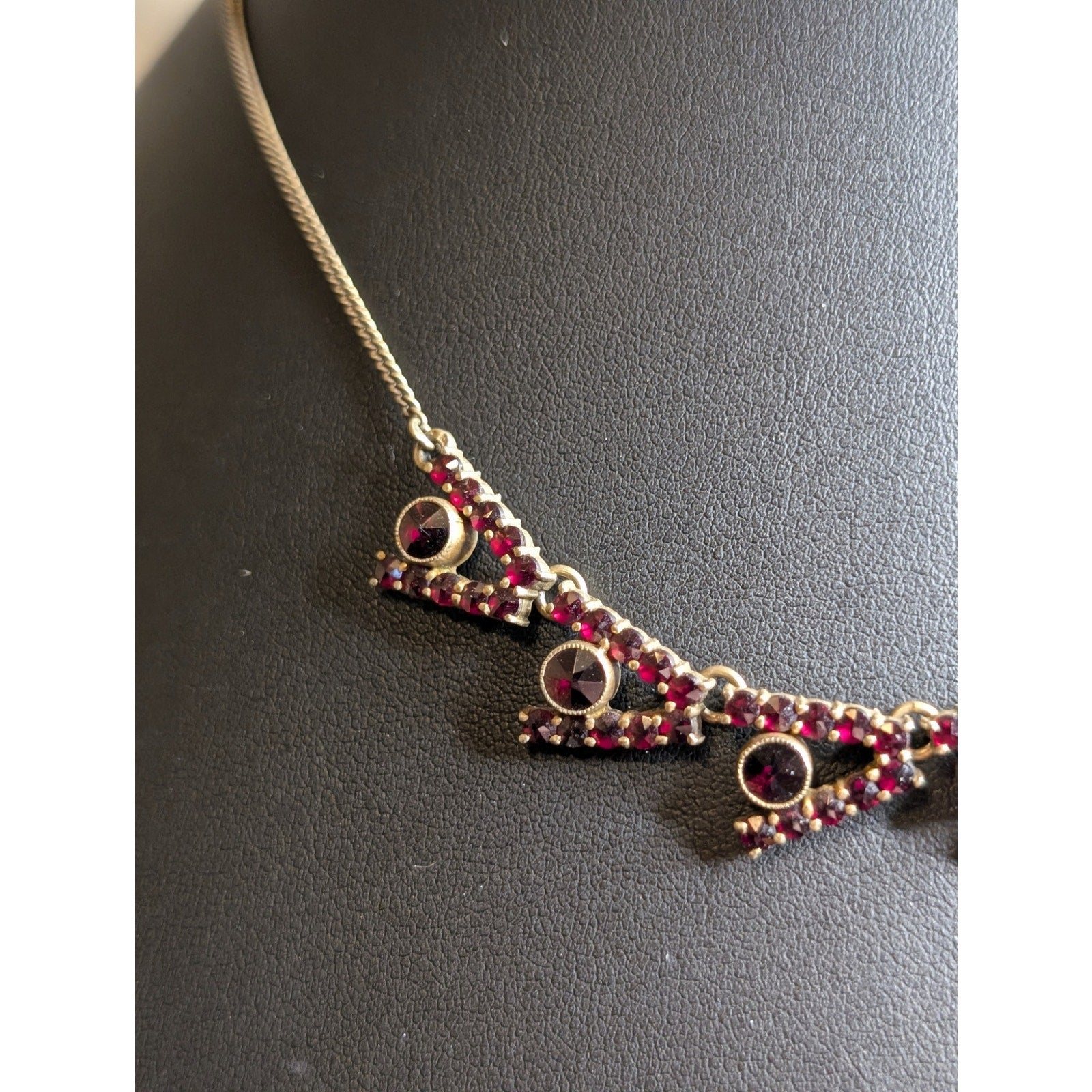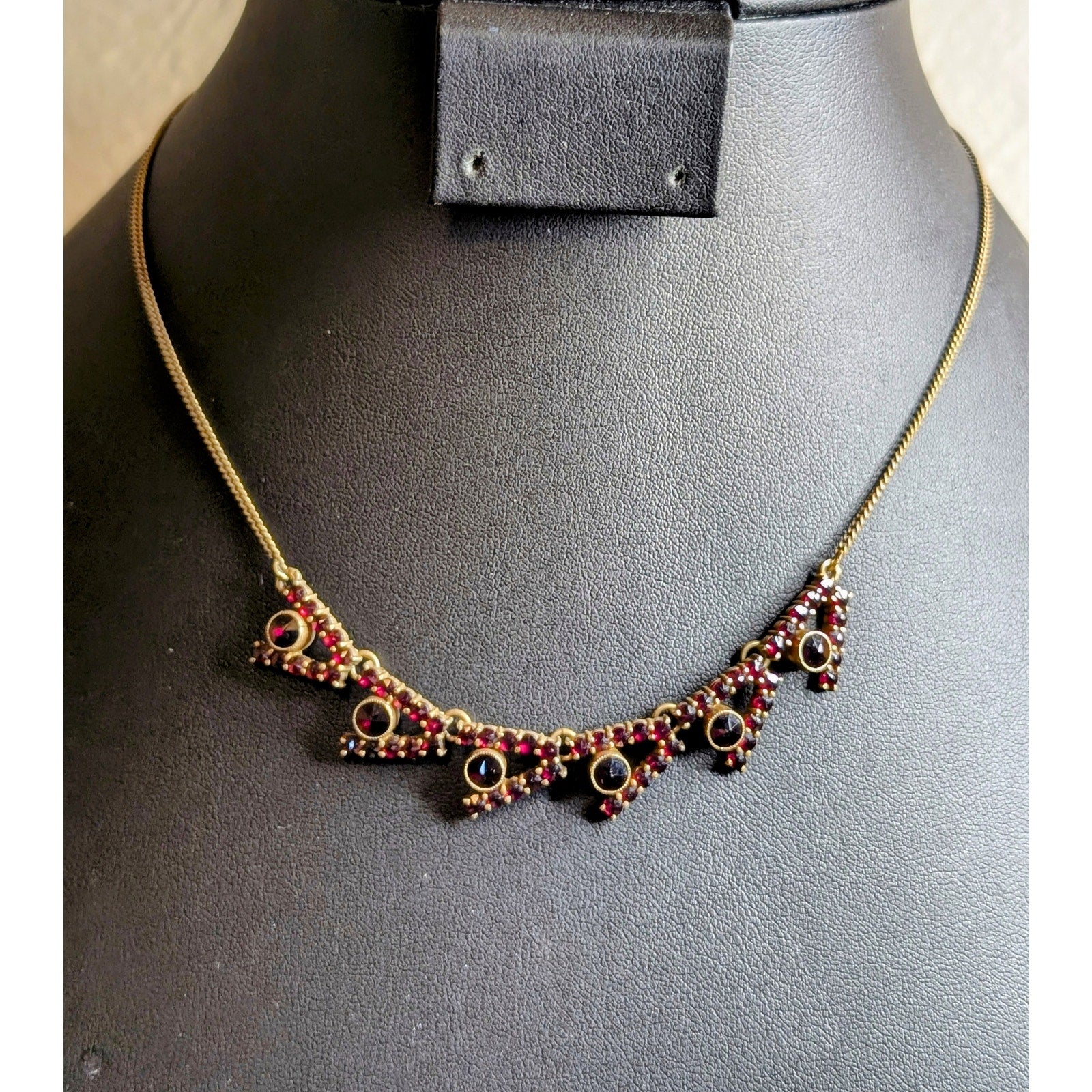 Antique Bohemian Natural Garnet Marked G2 W/ Hare's Head 16" Necklace