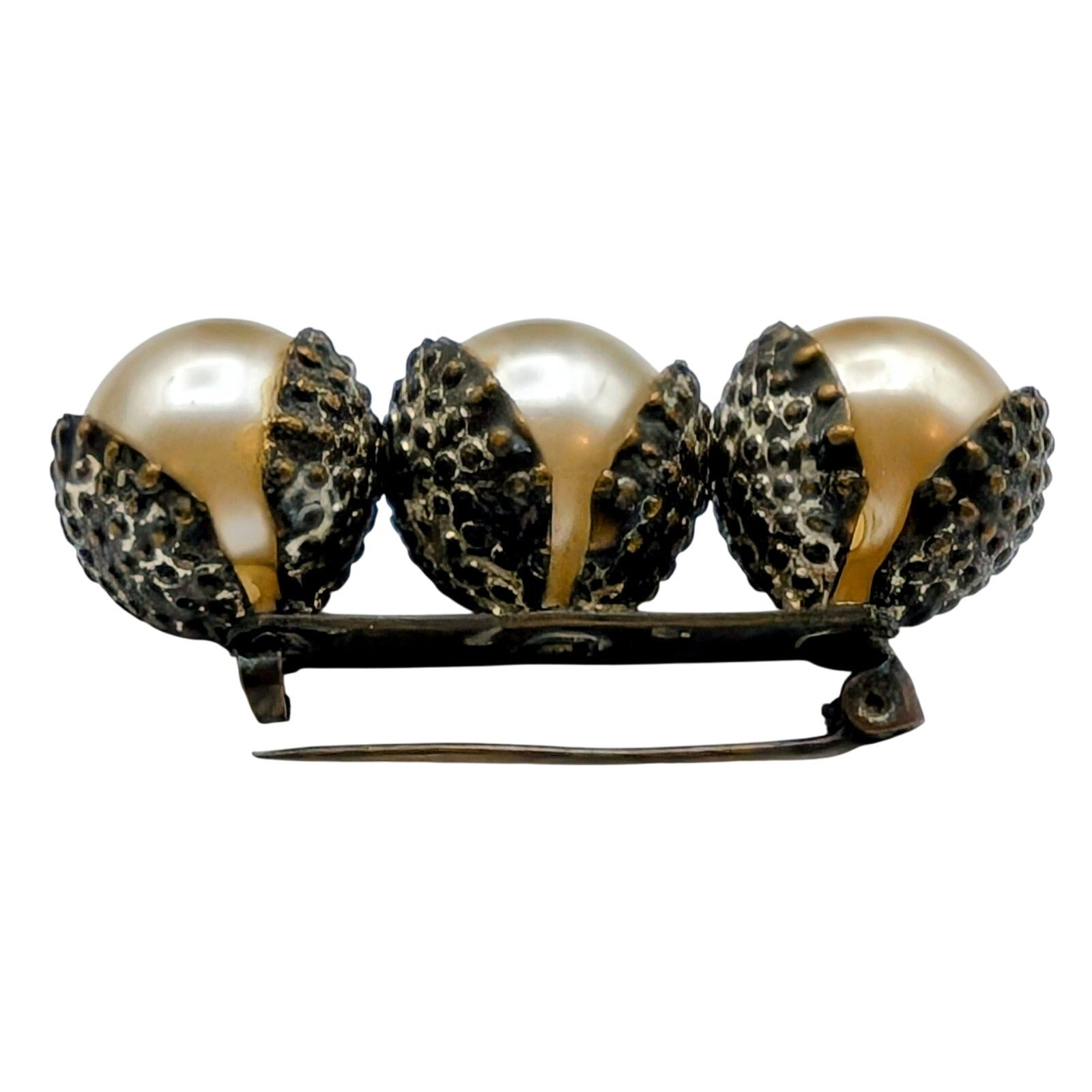 Antique 'C' Hook Three Faux Pearl Tulip Set Brooch/Pin