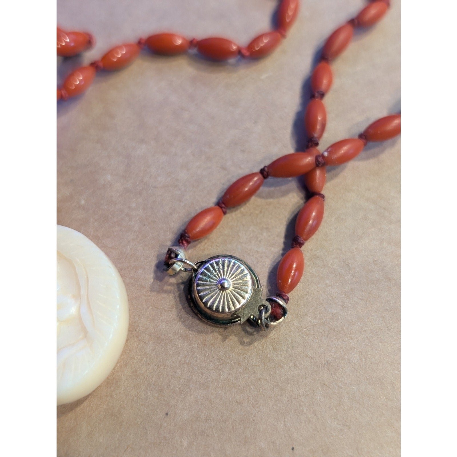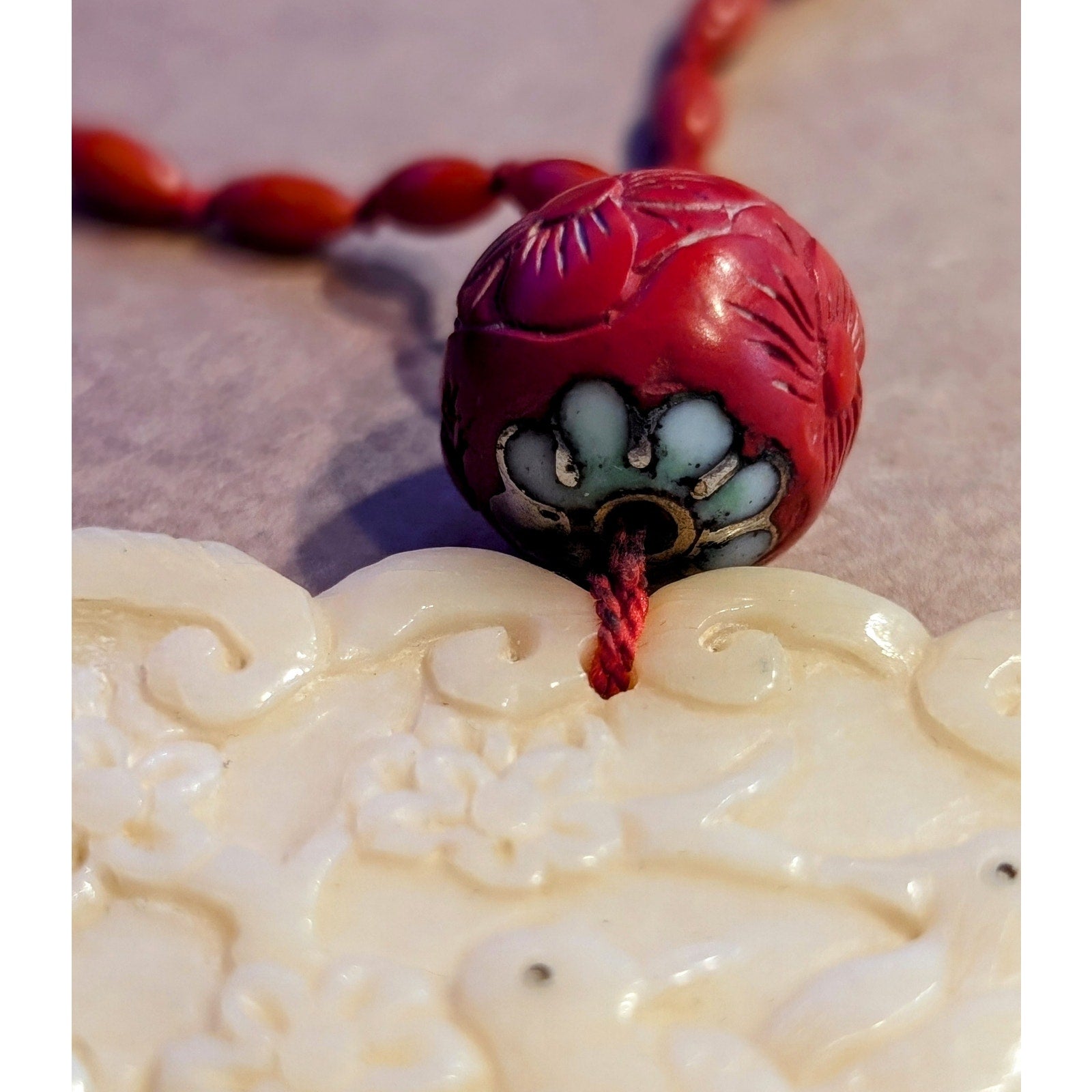 Antique Carved Birds Asian Medallion Hand-Knotted Beaded Necklace