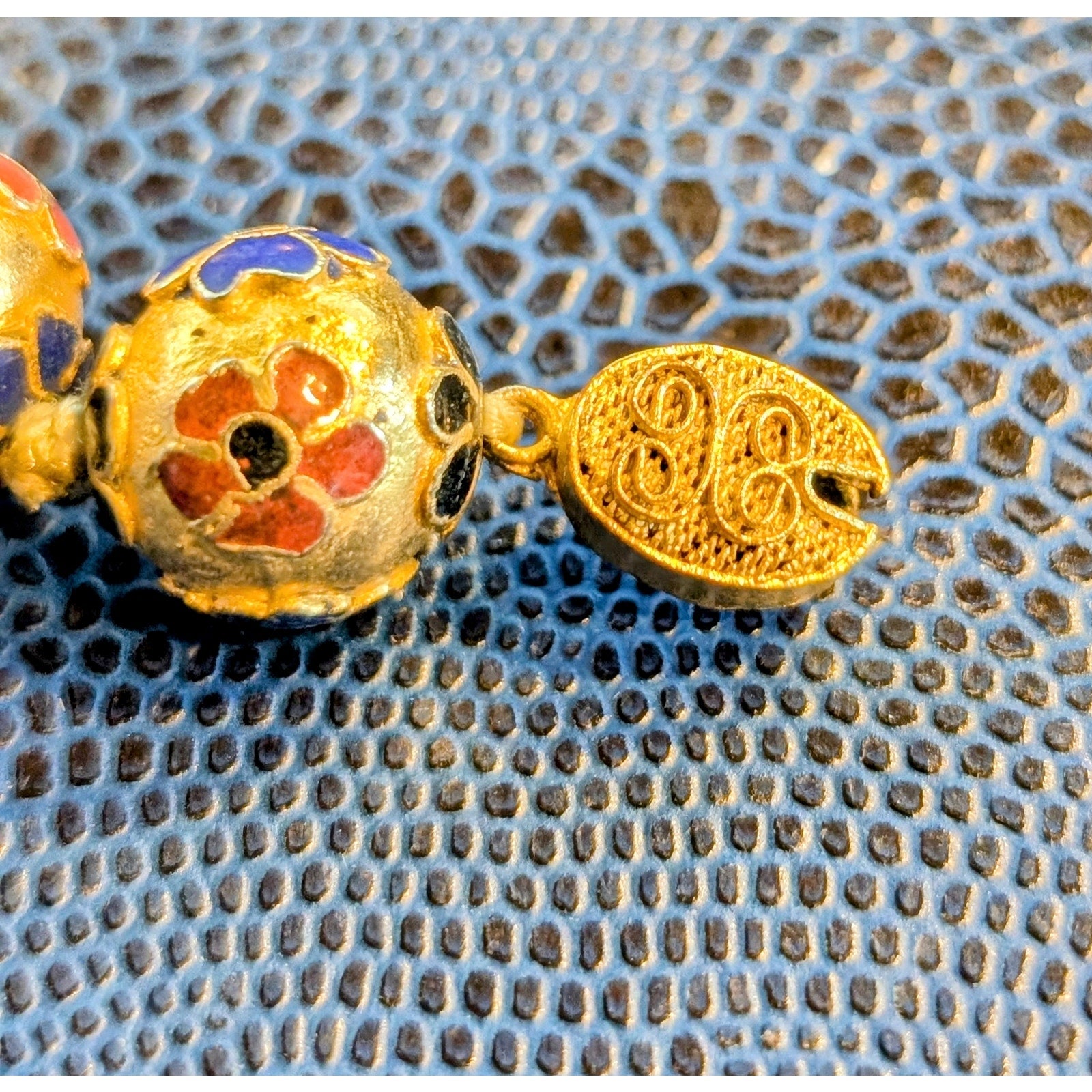 Antique Chinese Cloisonne Gold Tone Multi-Color Enamel Hand Knotted 14mm Bead 24" Necklace. Pre-owned, this beaded necklace is in excellent antique condition. Weigh 111.40g approximately. Filigree gold tone clasp works great.
