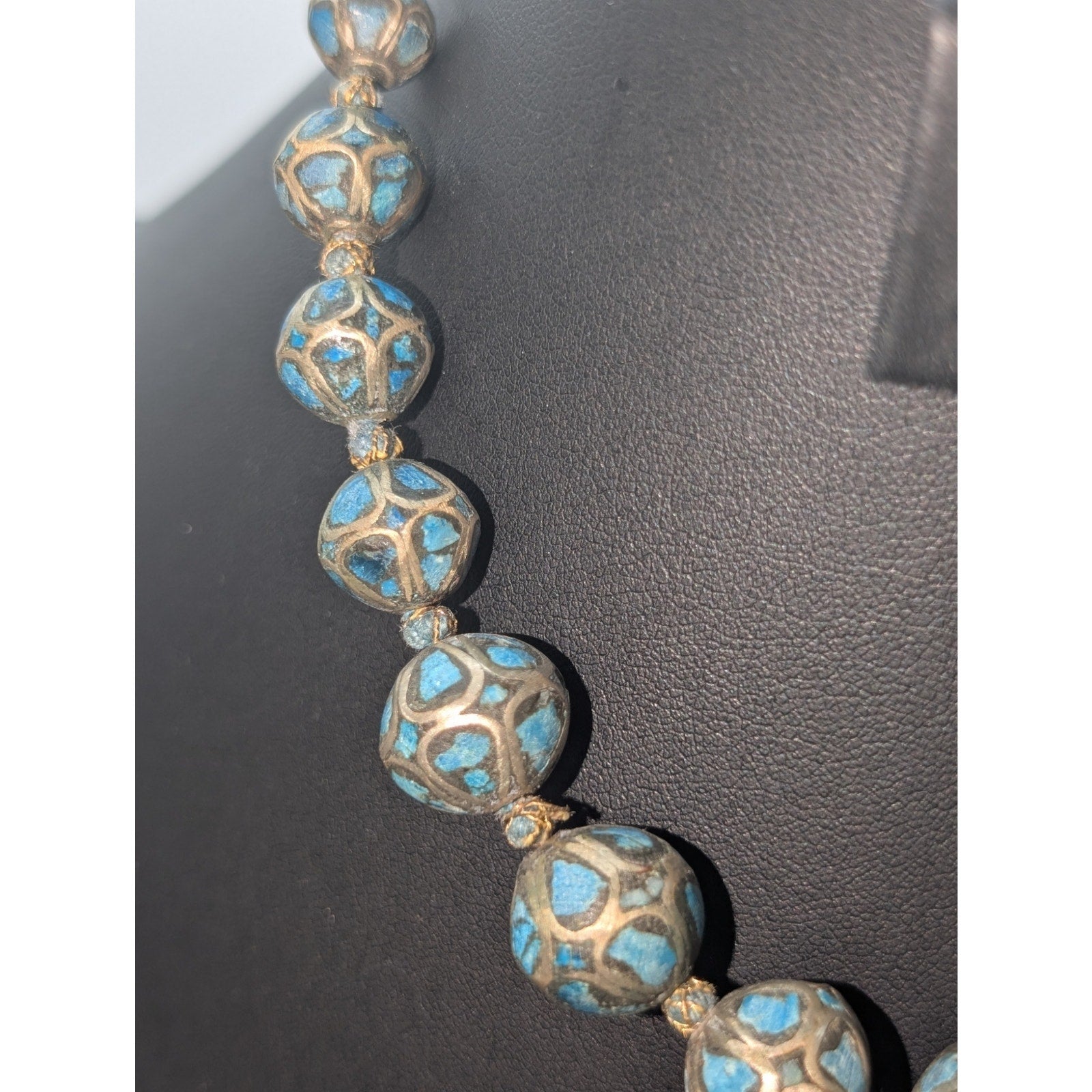 Antique Hand Made Ethnic Turquoise Inlay Non-Magnetic Graduated Bead Necklace