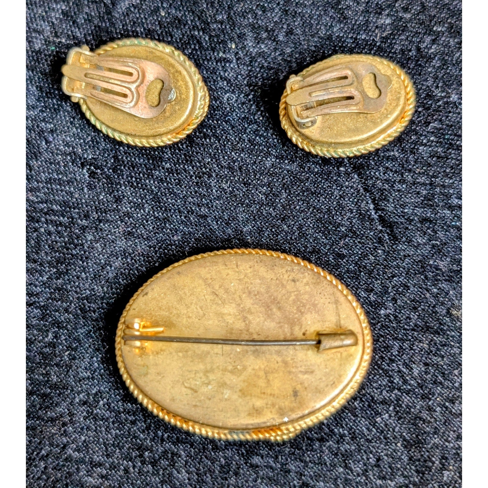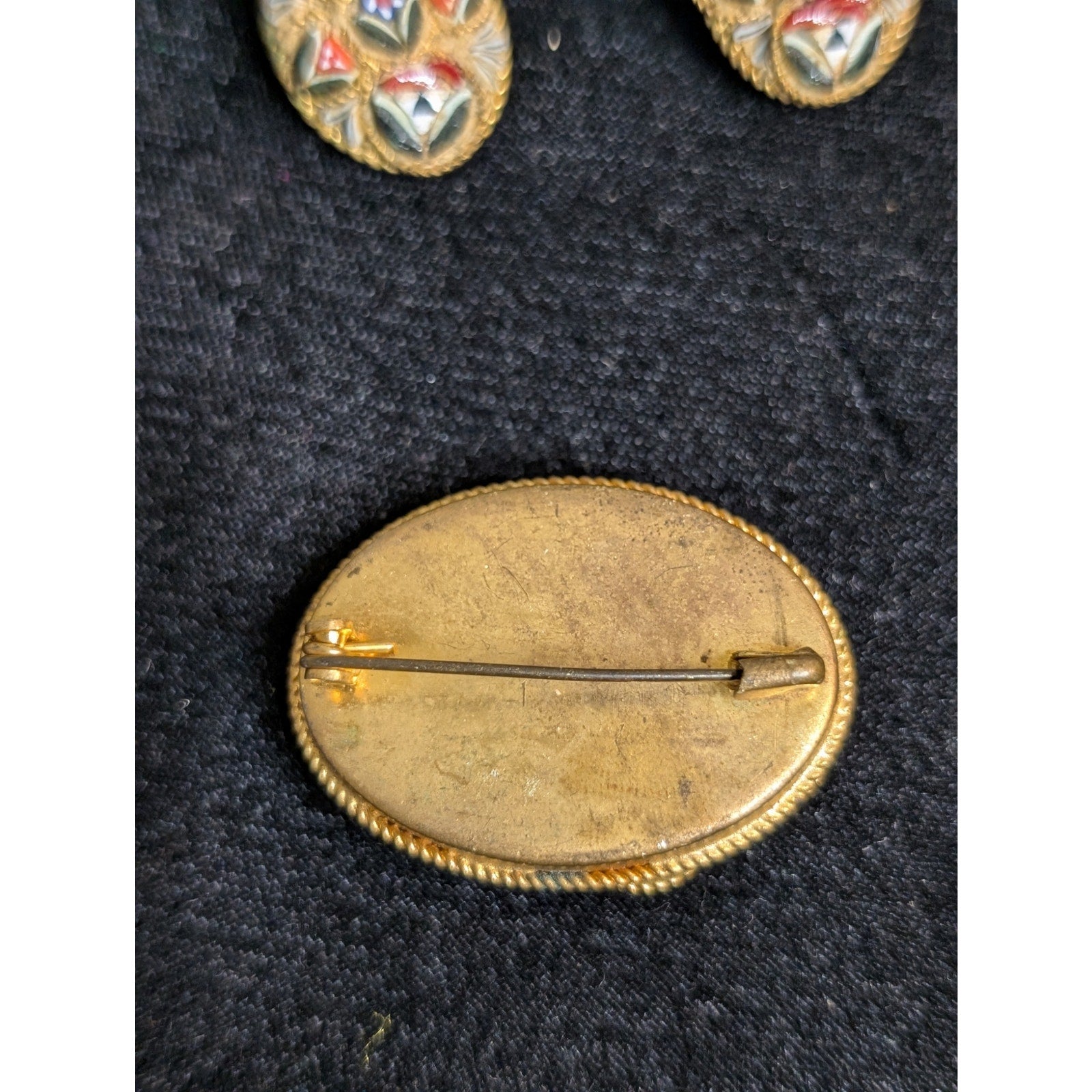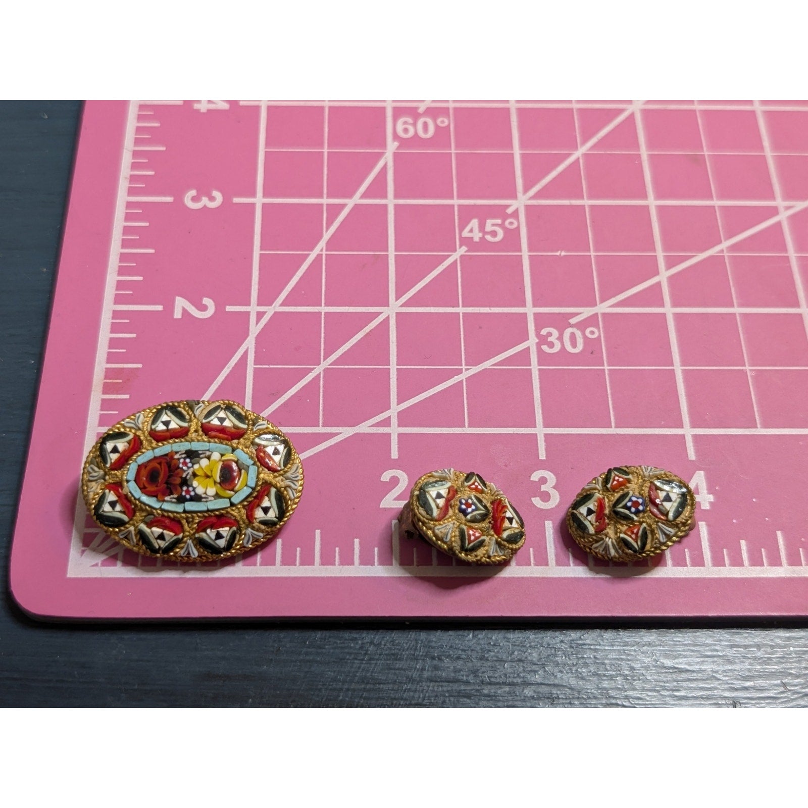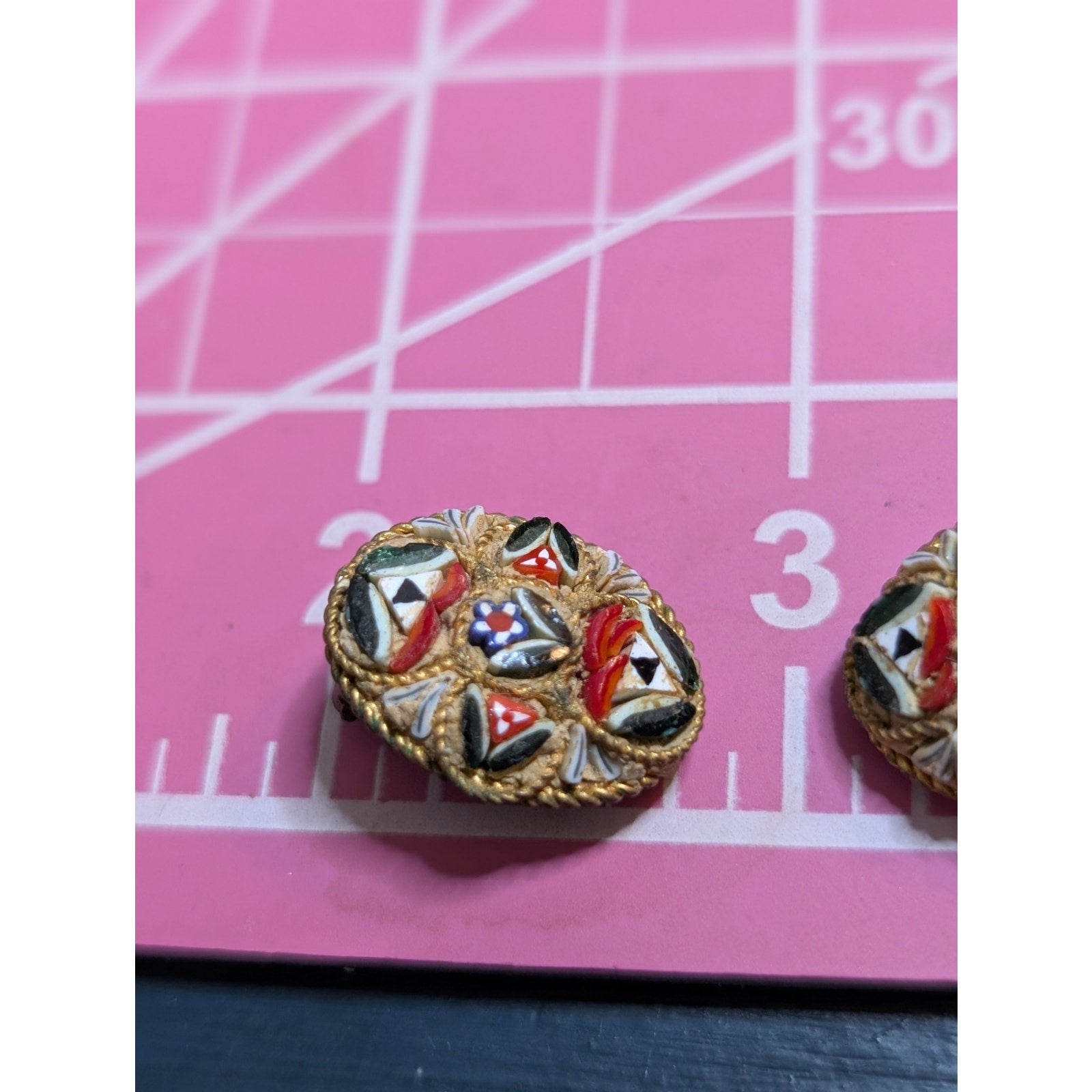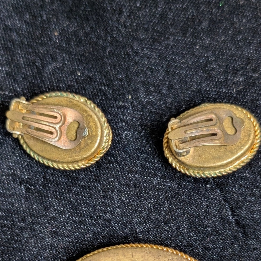 Antique Italian Micro Mosaic Multi Color Brooch & Matching Clip On Earrings