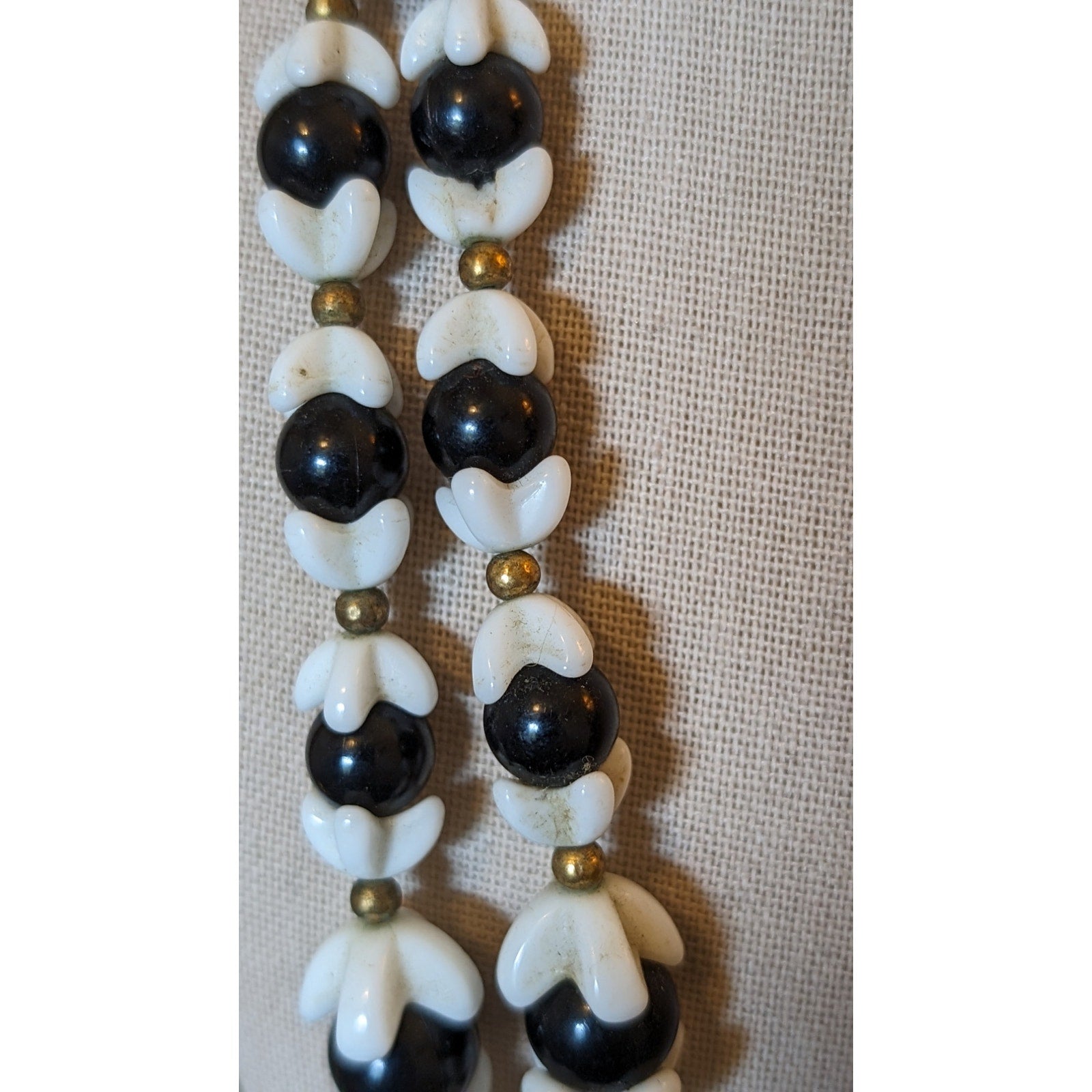 Antique Original 1920s/30s Celluloid Monochrome Black White Beaded Necklace