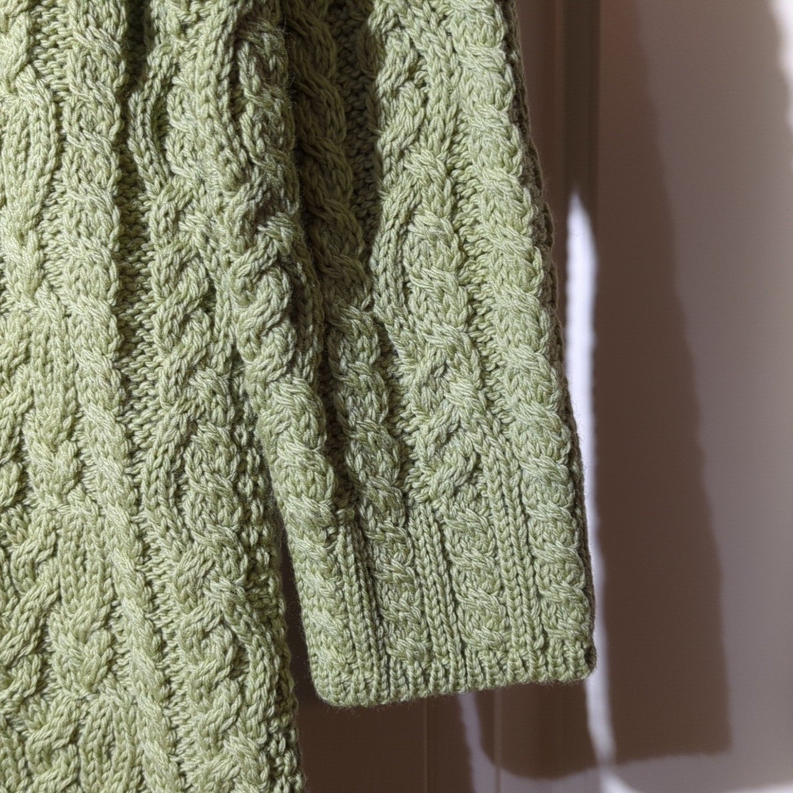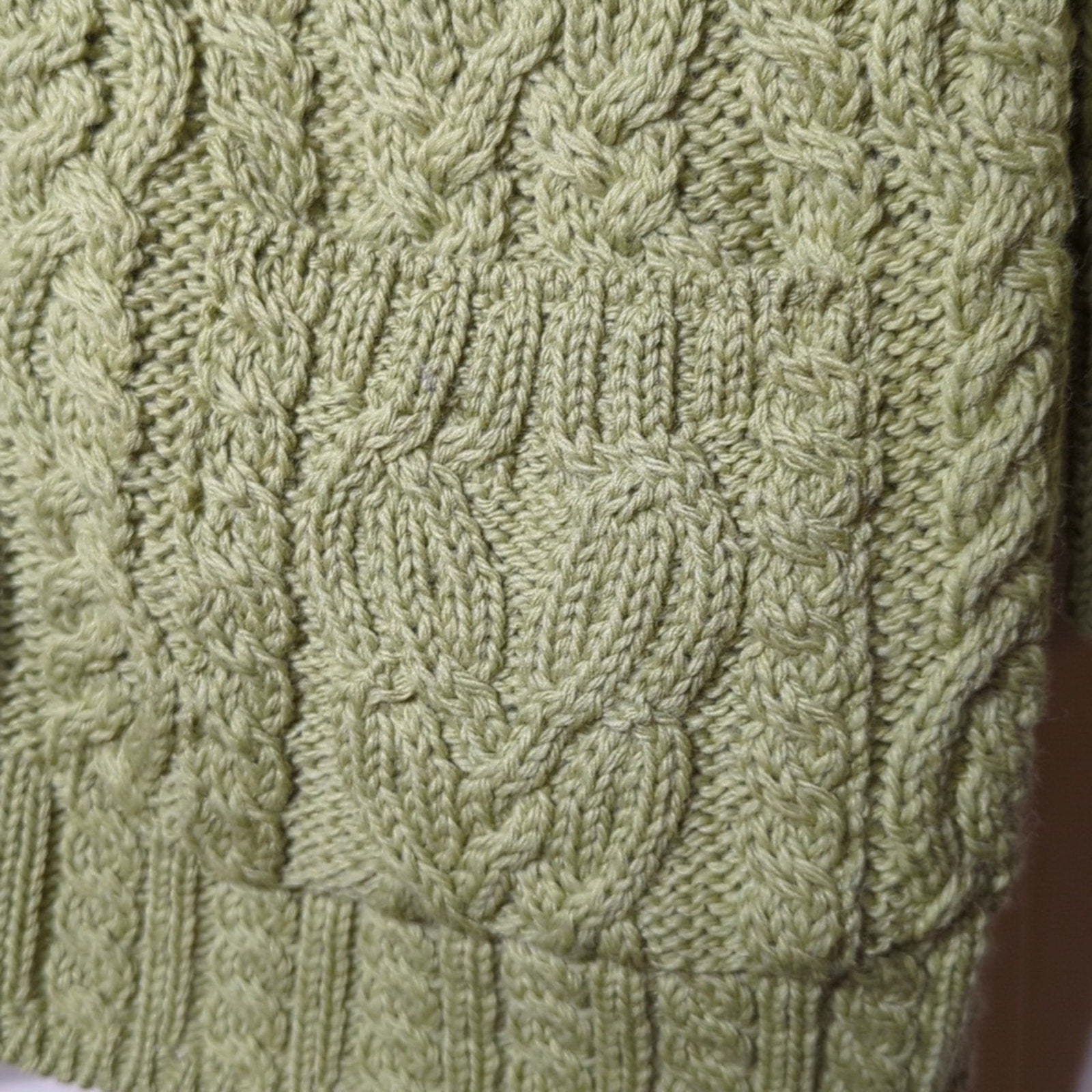 Aran Crafts Ireland Green Luxury Button Up Hand Knit Cabled Cardigan Women Sz XS